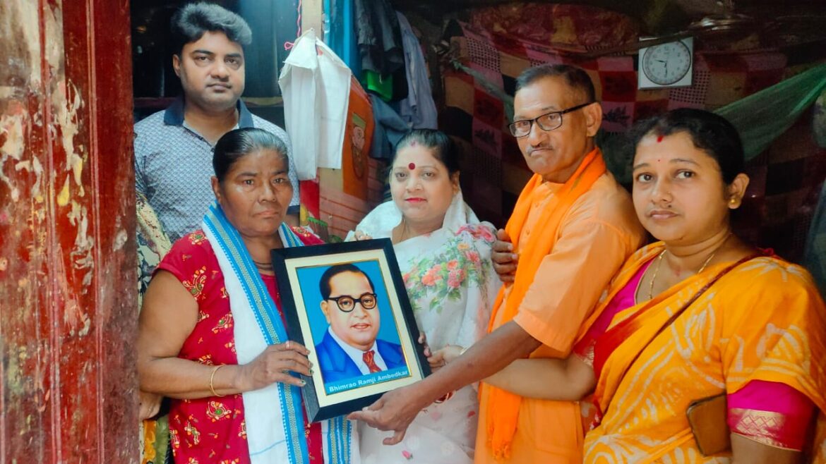 কর্পোরেটর রত্না দত্ত আম্বেদকরের ছবি ও লিফলেট বিলি করলেন এসসি সম্প্রদায়ের লোকজনের বাড়ি বাড়ি