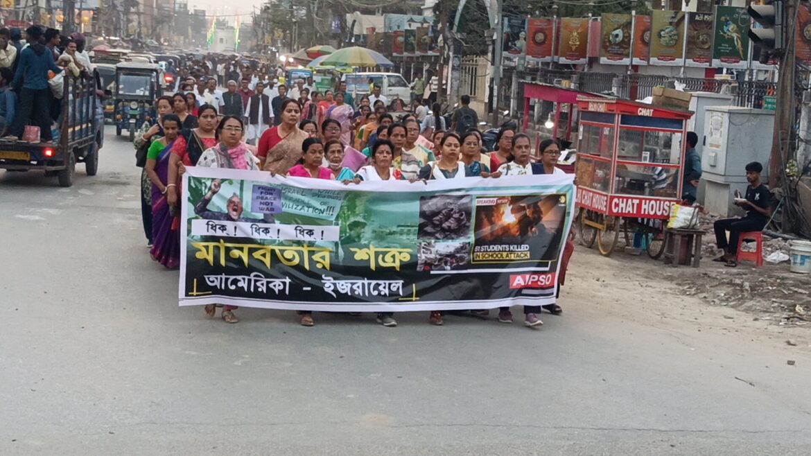 আগরতলা : মানবতার শত্রু আমেরিকা এবং ইজরায়েল ইরানের উপর বর্বরোচিত হিংস্র আক্রমণ চালায়। এই ঘটনার নিন্দা এবং প্রতিবাদ জানিয়ে আগরতলা শহরে মৌন মিছিল সংগঠিত করা হয়। রাজধানীর মেলারমাঠস্থিত ভানু ঘোষ ভবনের সামনে থেকে এই মৌন মিছিল শুরু হয়। মৌন মিছিলটি আগরতলা শহরের বিভিন্ন রাস্তা পরিক্রমা করে সিটি সেন্টারের সামনে গিয়ে শেষ হয়। সেখানে মোম বাতি প্রজ্জলন করে ঘটনার প্রতীবাদ জানানো হয়। উপস্থিত ছিলেন প্রাক্তন সাংসদ শঙ্কর প্রসাদ দত্ত সহ অন্যান্যরা। প্রাক্তন সাংসদ শঙ্কর প্রসাদ দত্ত জানান ইজরায়েল ইরানের উপর বোমা নিক্ষেপ করে দেড় শতাধিক নিষ্পাপ শিশুকে হত্যা করেছে। এই হত্যা কান্ড গোটা পৃথিবীর মানুষকে মর্মাহত করেছে। গোটা পৃথিবীর মানুষ দুঃখ প্রকাশ করেছে। ত্রিপুরা রাজ্যের আগরতলা শহরে এই ঘটনার প্রতিবাদে মৌন মিছিল সংগঠিত করা হয়েছে।