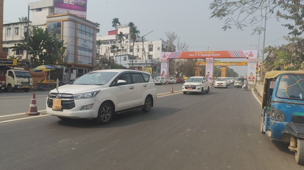 আগরতলা : দেশের উপরাষ্ট্রপতির রাজ্য সফরকে কেন্দ্র করে প্রস্তুতি চূড়ান্ত। শনিবার দুই দিনের রাজ্য সফরে আসছেন দেশের উপরাষ্ট্রপতি। রাজ্য সফরকালে ত্রিপুরা বিশ্ব বিদ্যালয়, হাপানিয়াস্থিত আন্তর্জাতিক মেলা প্রাঙ্গণে পৃথক দুইটি অনুষ্ঠানে অংশগ্রহণ করবেন। এছাড়াও তিনি উদয়পুরের মাতা ত্রিপুরা সুন্দরী মন্দিরে গিয়ে মায়ের পূজা দেবেন। উপরাষ্ট্রপতির রাজ্য সফরকে কেন্দ্র করে ইতি মধ্যে চূড়ান্ত প্রস্তুতি সেরে নেওয়া হয়েছে। জোরদার করা হয়েছে নিরাপত্তা ব্যবস্থা। উপরাষ্ট্রপতি এমবিবি বিমান বন্দর থেকে যে সড়ক দিয়ে ত্রিপুরা বিশ্ববিদ্যালয় যাবেন, সেই সড়কে এইদিন কনভয়ের মহড়া দেওয়া হয়। সংবাদ প্রতিনিধিদের কেমেরায় এই চিত্র ফুটে উঠে। উপরাষ্ট্রপতির রাজ্য সফরে যেন কোন ধরনের সমস্যা না হয় তার জন্য সতর্ক প্রশাসন। তাই শুক্রবার কনভয় দিয়ে চূড়ান্ত মহড়া দেওয়া হয়।