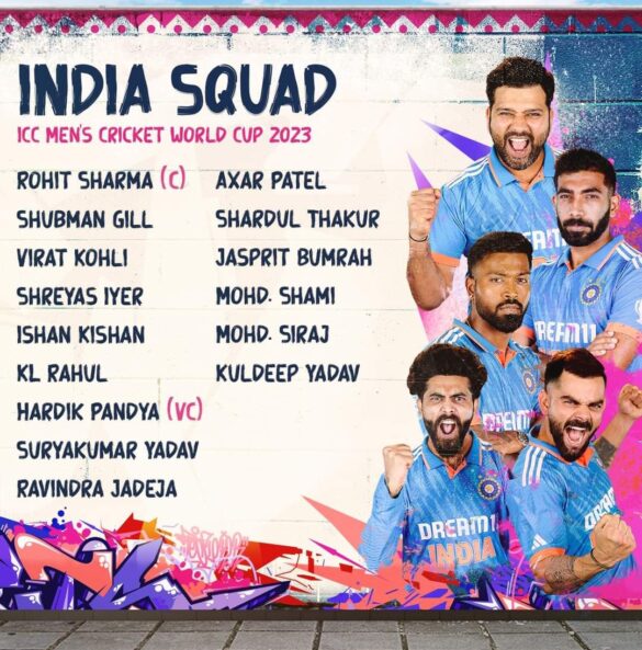 ১৫ জনের দলে রয়েছেন পাঁচ জন ব্যাটার, দু’জন উইকেটরক্ষক-ব্যাটার, চার জন অলরাউন্ডার, তিন জন জোরে বোলার এবং এক জন স্পিনার। ব্যাটার হিসাবে রোহিত ছাড়াও দলে রয়েছেন বিরাট কোহলি, শুভমন গিল, শ্রেয়স আয়ার, সূর্যকুমার যাদব। দুই উইকেটরক্ষক-ব্যাটার রাহুল এবং ঈশান কিশন। চার জন অলরাউন্ডার হলেন হার্দিক পাণ্ড্য, রবীন্দ্র জাডেজা, অক্ষর পটেল এবং শার্দূল ঠাকুর। তিন জন জোরে বোলার যশপ্রীত বুমরা, মহম্মদ শামি এবং মহম্মদ সিরাজ। স্পিনার কুলদীপ যাদব। এশিয়া কাপের দল থেকে বাদ দেওয়া হয়েছে তিলক বর্মা এবং প্রসিদ্ধ কৃষ্ণকে।