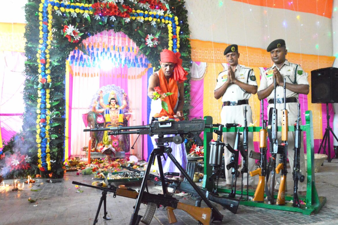 আগরতলা : দেবশিল্পী বিশ্বকর্মা পুজার আরাধনা হয় ত্রিপুরা স্টেট রাইফেলসের বিভিন্ন ব্যাটেলিয়নেও।সঠিক সময়ে সঠিকভাবে আগ্নেয়াস্ত্রগুলি যাতে কাজ করে সেজন্য প্রতিবছর এই পূজা করে হয়ে থাকে। এবছরও এর ব্যতিক্রম ঘটেনি। সোমবার ত্রিপুরা স্টেট রাইফেলসের দ্বিতীয় ব্যাটেলিয়নের এম টি প্ল্যাটুন ক্যাম্পে হয় পূজা। এদিন সকালে নিয়ম মেনেই হয় দেবশিল্পীর আরাধনা। একই সঙ্গে যানবাহনের পাশাপাশি জওয়ান- আধিকারিকদের ব্যবহৃত অস্ত্রগুলি পূজা করা হয়। জওয়ান-আধিকারিকরা জানান, সঠিক সময়ে যাতে যানবাহন ও অস্ত্র গুলি ব্যবহার করার সময় কোন ব্যাঘাত না ঘটে সেজন্যই এই অস্ত্র গুলির পূজা দেওয়া হয়। বিশ্বকর্মা পুজাকে ঘিরে জওয়ান ও তাদের পরিবারের সদস্যদের মধ্যে দারুণ উৎসাহ লক্ষ্য করা যায়।