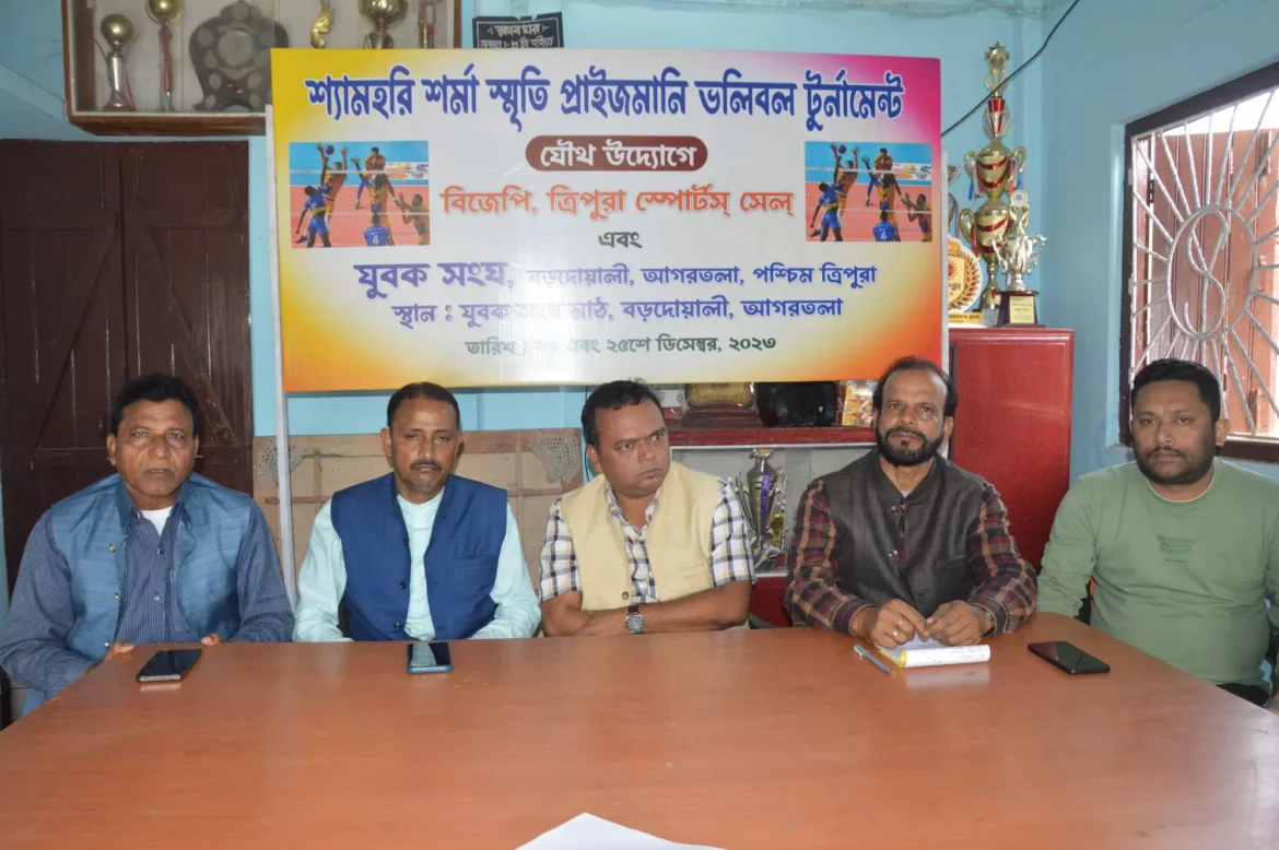 আগরতলা : প্রথমবারের মতো প্রয়াত প্রাক্তন বিজেপি নেতা শ্যামহরি শর্মা স্মৃতি প্রাইজমানি ভলিবল প্রতিযোগিতার আয়োজন করা হচ্ছে। রাজধানীর বড়দোয়ালি যুবক সংঘ ও বিজেপি-র সদর আরবান স্পোর্টস সেলের উদ্যোগ ভলিবল টুর্নামেন্ট হবে। চলতি মাসের ২৪ ও ২৫ তারিখ এই টুর্নামেন্ট হবে যুবক সংঘ মাঠে। বুধবার সাংবাদিক সম্মেলন করে একথা জানালেন বিজেপি ত্রিপুরা স্পোর্টস সেলের সদর আরবান স্পোর্টস কনভেনর বিমান দেব। উপস্থিত ছিলেন আয়োজক কমিটির চেয়ারম্যান অভিজিৎ মল্লিক, রাজ্য স্পোর্টস সেলের আহ্বায়ক স্বপন সাহা সহ অন্যান্যরা।তারা জানান, টুর্নামেন্টের উদ্বোধন করবেন মুখ্যমন্ত্রী ডাঃ মানিক সাহা। চ্যাম্পিয়ন দল পাবে প্রাইজমানি ২০ হাজার ও রানার্স পাবে ১০ হাজার টাকা।