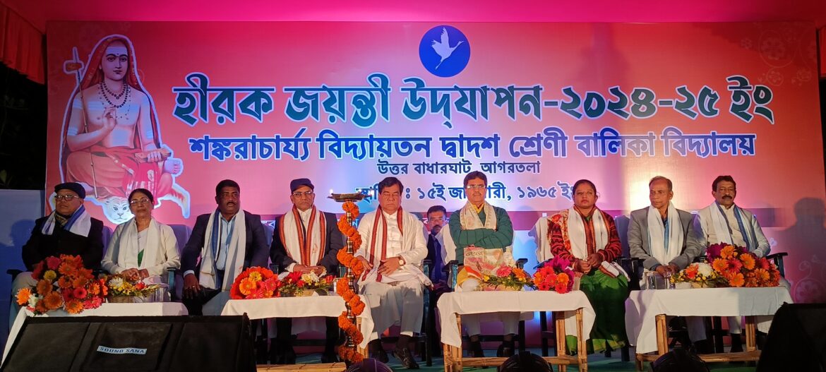 আগরতলা : রাজ্যের ৮ টি জনজাতি গোষ্ঠীর ভাষায় পাঠ্য পুস্তক তৈরি করা হয়েছে। কলেজে ছাত্রীদের ভর্তির ফি মুকুব করে দেওয়া হয়েছে। মহিলাদের স্বশক্তিকরন করার চেষ্টা করছে রাজ্য সরকার। উত্তর বাধারঘাটস্থিত শঙ্করাচার্য্য বিদ্যায়তন দ্বাদশ শ্রেণী বালিকা বিদ্যালয়ে হীরক জয়ন্তীর অনুষ্ঠানে একথা বললেন মুখ্যমন্ত্রী ডাঃ মানিক সাহা।এদিন বিদ্যালয় প্রাঙ্গণেই হয় অনুষ্ঠান। অনুষ্ঠানে উপস্থিত ছিলেন আগরতলা পুর নিগমের মেয়র দীপক মজুমদার, স্থানীয় কর্পোরেটর, সমাজসেবী সঞ্জয় সাহা, প্রাক্তন পুলিস আধিকারিক বিকে রায়, বিদ্যালয়ের ভারপ্রাপ্ত প্রধান শিক্ষিকা সহ অন্যরা। আলোচনা করতে গিয়ে মুখ্যমন্ত্রী বিভিন্ন বিষয় তুলে ধরেন। তিনি বলেন, বিদ্যাজ্যোতি প্রকল্পের অধীন আরও বহু সরকারি বিদ্যালয়কে মডার্ন স্কুলে পরিণত করার চিন্তা ভাবন করছে রাজ্য সরকার।রাজ্যের ৮ টি জনজাতি গোষ্ঠীর ভাষায় পাঠ্য পুস্তক তৈরি করা হয়েছে। কলেজে ছাত্রীদের ভর্তির ফি মুকুব করে দেওয়া হয়েছে।তিনি আরও বলেন, নবম শ্রেণিতে পাঠরত প্রায় ১ লক্ষ ছাত্রীর মধ্যে বাইসাইকেল বিতরণ করা হয়েছে। তৃতীয় শ্রেণিতে পাঠরত ছাত্র-ছাত্রীদের জন্য নিপুন ত্রিপুরা নামে একটি প্রকল্প চালু করা হয়েছে।