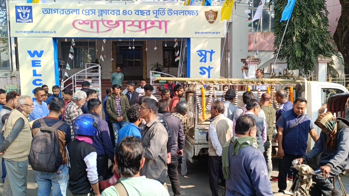 আগরতলা : রাজ্যের স্বনামধন্য চিত্র সাংবাদিক দেবাশিস বড়ুয়ার অকাল প্রয়াণে গভীর শোক প্রকাশ করেছেন আগরতলা প্রেস ক্লাবের সভাপতি জয়ন্ত ভট্টাচার্য। সোমবার প্রেস ক্লাবের সামনে প্রয়াত সাংবাদিককে শেষ শ্রদ্ধা জানান প্রেস ক্লাবের সভাপতি জয়ন্ত ভট্টাচার্য, সম্পাদক রমাকান্ত দে, প্রাক্তন সম্পাদক প্রণব সরকার সহ অন্যান্য সহকর্মীরা। সোমবার স্ক্লাএ চিকিৎসাধীন অবস্থায় রাজ্যের প্রধান রেফারেল হাসপাতাল জিবিতে প্রয়াত হন চিত্র সাংবাদিক দেবাশিস বড়ুয়া। অনেক দিন ধরেই রোগাক্রান্ত ছিলেন এই চিত্র সাংবাদিক। শারীরিক অবস্থা বেশি খারাপ হওয়ায় সম্প্রতি জিবিতে ভর্তি করানো হয়। অবশেষে চিকিৎসকদের সমস্ত চেষ্টা ব্যর্থ করে দিয়ে এদিন সকালে প্রয়াত হন। উনার মৃত্যুর খবর পেয়ে হাসপাতালে ছুটে যান সহকর্মীরা। সেখান থেকে মৃতদেহ নিয়ে আসা হয় ধলেশ্বর নিজ বাড়িতে। কান্নায় ভেঙে পড়েন পরিজনেরা। বাড়ি থেকে আগরতলা প্রেস ক্লাবে নেওয়া হয়। পরে নিজের কর্মস্থল দৈনিক সংবাদ অফিস হয়ে বটতলা শ্মশানে নেওয়া হয়। তার মৃত্যুতে শোক জানিয়েছে আগরতলা প্রেস ক্লাব।