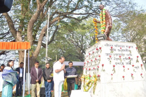 আগরতলা : প্রতিবছর যথাযোগ্য মর্যাদায় ৩০ জানুয়ারির জাতির জনক মহাত্মা গান্ধীর শহীদান দিবস উদযাপন করা হয়।সরকারি-বেসরকারি উদ্যোগে জাতির জনককে শ্রদ্ধা জানানো হয়। মঙ্গলবার সকালে শহীদান দিবসে জাতির জনককে শ্রদ্ধা জানাও হয় রাজধানীর সার্কিট হাউস সংলগ্ন গান্ধীমূর্তিতে। সেখানে মহাত্মা গান্ধীর প্রতিকৃতিতে ফুলমালা দিয়ে শ্রদ্ধা নিবেদন করেন রাজ্যপাল ইন্দ্র সেনা রেড্ডি নাল্লু, শিল্প বাণিজ্য মন্ত্রী সান্ত্বনা চাকমা, তথ্য সংস্কৃতি দপ্তরের অধিকর্তা বিম্বিসার ভট্টাচার্য সহ অন্যরা। এর প্র রাজ্যপাল সহ অন্যরা যান গান্ধীঘাটে। সেখানেও গান্ধী বেদীতে পুষ্পার্ঘ অর্পণ করে শ্রদ্ধা জানান রাজ্যপাল – মন্ত্রী। এদিন রাজ্যপাল বলেন, দেশের স্বাধীনতার জন্য লড়াই করেছেন মহাত্মা গান্ধী। দেশকে এগিয়ে নিয়ে যাওয়ার জন্য সকলকে কাজ করতে হবে। গ্রাম থেকে দেশকে মজবুত করার জন্য লোকজন কাজ করে এগিয়ে নিয়ে যাবেন।দেশকে মজবুত করবেন এটাই বিশ্বাস করেন রাজ্যপাল।