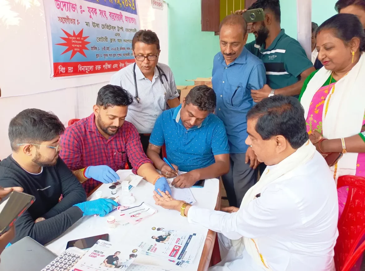 আগরতলা : সরকারের পাশাপাশি মানুষের মধ্যে বিনামূল্যে স্বাস্থ্য পরিষেবা পৌঁছে দিতে বরাবর কাজ করে চলেছে মা ঊষা চেরিট্যাবল ট্রাস্ট, রোটারি ক্লাব অব আগরতলা।বিভিন্ন জায়গায় শিবির করে থাকে এই সংস্থা গুলি। এগিয়ে আসে তাদের সঙ্গে স্থানীয় ক্লাব-সংস্থা। রবিবার ছুটির দিনে স্বাস্থ্য শিবির করা হয় আগরতলা বড়দোয়ালি স্থিত যুবক সংঘ প্রাঙ্গণে। যুবক সংঘের সঙ্গে সহযোগিতায় ছিল মা ঊষা চেরিটেবল ট্রাস্ট ও রোটারী ক্লাব অব আগরতলা।মেগা স্বাস্থ্য শিবিরে উপস্থিত ছিলেন আগরতলা পুর নিগমের মেয়র দীপক মজুমদার, কর্পোরেটর অভিজিৎ মল্লিক, শম্পা সরকার চৌধুরী, সমাজসেবী সঞ্জয় সাহা সহ তিনটি সংস্থার কর্মকর্তারা। বিশেষজ্ঞ চিকিৎসকরা সেখানে পরিষেবা দেন। শিবিরে রক্ত পরীক্ষারও ব্যবস্থা করা হয় এবং ওষুধ দেওয়া হয় বিনামূল্যে। মেয়র এদিন বলেন, যুবক সংঘ সারা বছর সামাজিক কাজ করে থাকে। এ ধরণের মেগা স্বাস্থ্য শিবিরের প্রয়োজন রয়েছে। এটা ভালো উদ্যোগ।এদিন শিবিরকে ঘিরে এলাকায় ভালো সাড়া পড়ে।