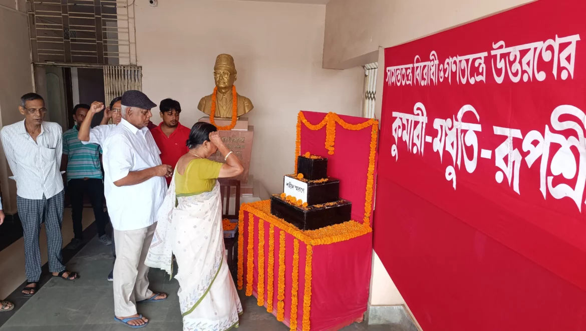 আগরতলা : আসন্ন নির্বাচনী লড়াইয়ে সামন্ত প্রভুদের বংশদেরদের এবং তার সহযোগী সাম্প্রদায়িক কর্পোরেট লেহনকারী বিজেপিকে ঐক্যবদ্ধভাবে হারানোর মধ্য দিয়েই কুমারী-মধুতি-রূপশ্রীর প্রতি শ্রদ্ধা জ্ঞাপন করা হবে। তিন বীরাঙ্গনার শহীদান দিবসে একথা বললেন বিরোধী দলনেতা জিতেন চৌধুরী। তিতুন প্রথার বিরুদ্ধে লড়াই করতে গিয়ে ৭৫ বছর আগে ১৯৪৯ সালে বর্তমান খোয়াইয়ের পদ্মবিলে শহীদ হয়েছিলেন কুমারী মধুতি রুপশ্রী। তারাই রাজ্যের প্রথম মহিলা শহীদ। প্রতিবছর সিপিএম এর তরফে তিন শহিদকে শ্রদ্ধা-শপথে স্মরণ করা হয়।এবছরও এর ব্যতিক্রম ঘটেনি।বৃহস্পতিবার সকালে তিন বীরাঙ্গনাকে শ্রদ্ধা জানানো হয় রাজ্যের বিভিন্ন জায়গায়। সিপিএম রাজ্য দপ্তরেও স্মরণ করা হয় তিন শহীদকে।। সেখানে শহীদ বেদীতে শ্রদ্ধা নিবেদন করেন সিপিএম রাজ্য সম্পাদক তথা বিরোধী দলনেতা জিতেন চৌধুরী, কেন্দ্রীয় কমিটির সদস্যা রমা দাস, ছাত্র নেতা সুলেমান আলি সহ সিপিএম রাজ্য দপ্তরের কর্মীরা।এদিন আলোচনা করতে গিয়ে নাম না করে সিপিএম রাজ্য সম্পাদক তিপ্রা মথার প্রধানের সমালোচনা করেন।