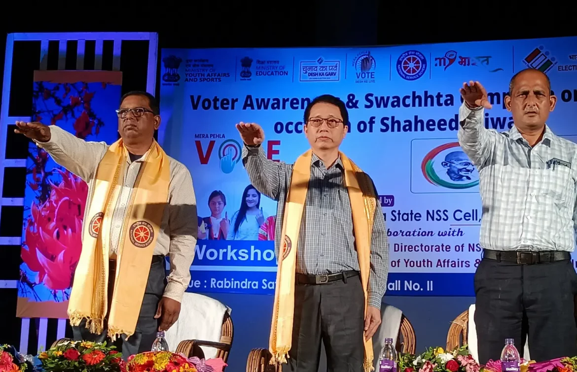 আগরতলা : নতুন-যুব ভোটারদের মধ্যে ভোটাধিকার নিয়ে উৎসাহ বাড়াতে নির্বাচন কমিশন বিভিন্ন কর্মসূচী নিয়ে থাকে। লোকসভা নির্বাচনকে সামনে রেখেও প্রতিটি জেলায় হচ্ছে বিভিন্ন কর্মসূচী। শনিবার যুব বিষয়ক ক্রীড়া দপ্তরের অধীন স্টেট এন এস এস সেলের উদ্যোগে হয় সচেতনতা মূলক কর্মসূচী। এদিন আগরতলা রবীন্দ্র ভবনে হয় এই কর্মসূচী। এতে উপস্থিত ছিলেন রাজ্যের অতিরিক্ত মুখ্য নির্বাচনী আধিকারিক ঊষা যেন মগ, যুব বিষয়ক ক্রীড়া দপ্তরের অধিকর্তা সত্যব্রত নাথ সহ অন্যরা। বিভিন্ন শিক্ষা প্রতিষ্ঠান থেকে ছাত্র- ছাত্রীরা এতে অংশ নেন। ১৯ এপ্রিল পশ্চিম ত্রিপুরা লোকসভা ও রামনগর বিধানসভার উপভোট।ইতিমধ্যে মনোনয়ন পত্র জমা ও পরীক্ষা শেষ হয়ে গেছে। এখন চলছে রাজনৈতিক দল গুলির মধ্যে যেমন প্রচারে তেজি ভাব তেমনি প্রশাসনের তরফে চলছে জোর প্রস্তুতি সুষ্ঠু ভাবে নির্বাচন সম্পন্ন করার জন্য।