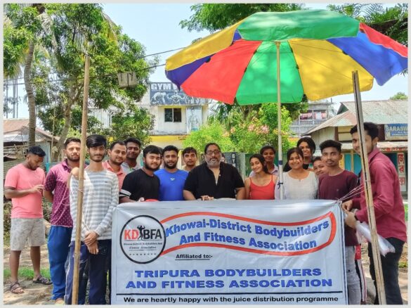 তেলিয়ামুরা : সামাজিক কর্মসূচীতে এগিয়ে এলো ত্রিপুরা বডিবিল্ডার্স এন্ড ফিটনেস এসোসিয়েশন অনুমোদিত খোয়াই বডি বিল্ডার্স এন্ড ফিটনেস সংগঠন। সংগঠনের রাজ্য সভাপতি তনয় দাসের অনুপ্রেরণায় খোয়াই জেলা কমিটি কর্মসূচী গ্রহণ করে। বৃহস্পতিবার সংগঠনের তরফে তেলিয়ামুতা জিম ওয়ার্ল্ডের সামনে লোকজনের মধ্যে আম পানা ও লেবুর শরবত বিলি করা হয়। তীব্র গরমের হাত থেকে মানুষকে কিছুটা স্বস্তি দিতে সংগঠনের এই প্রয়াস।উপস্থিত ছিলেন খোয়াই বডি বিল্ডার্স এন্ড ফিটনেস এসোসিয়েশনের জেলা সম্পাদক শান্তনু সাহা, সহকারী সম্পাদক দীপঙ্কর দেবনাথ সহ অন্যরা। উল্লেখ্য, এধরণের কর্মসূচী গ্রহণের জন্য সংগঠনের রাজ্য সভাপতি প্রতিটি জেলা কমিটিকে নির্দেশ দিয়েছেন।সংগঠনের এ ধরণের প্রয়াস সত্যি প্রশংসার দাবি রাখে।