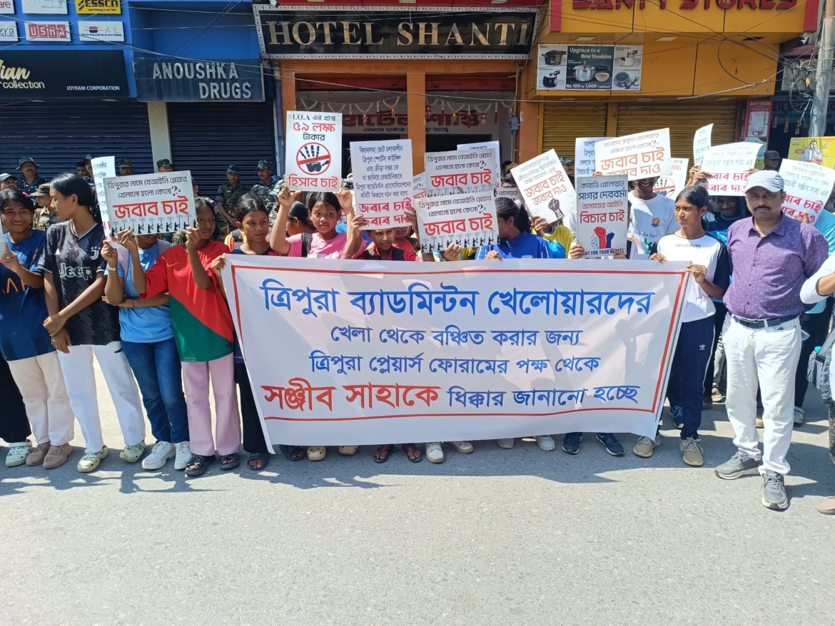 ত্রিপুরা ব্যাডমিন্টন এসোসিয়েশনের সম্পাদকের বাড়ি- হোটেলের সামনে প্লেয়ারস ফোরামের বিক্ষোভ