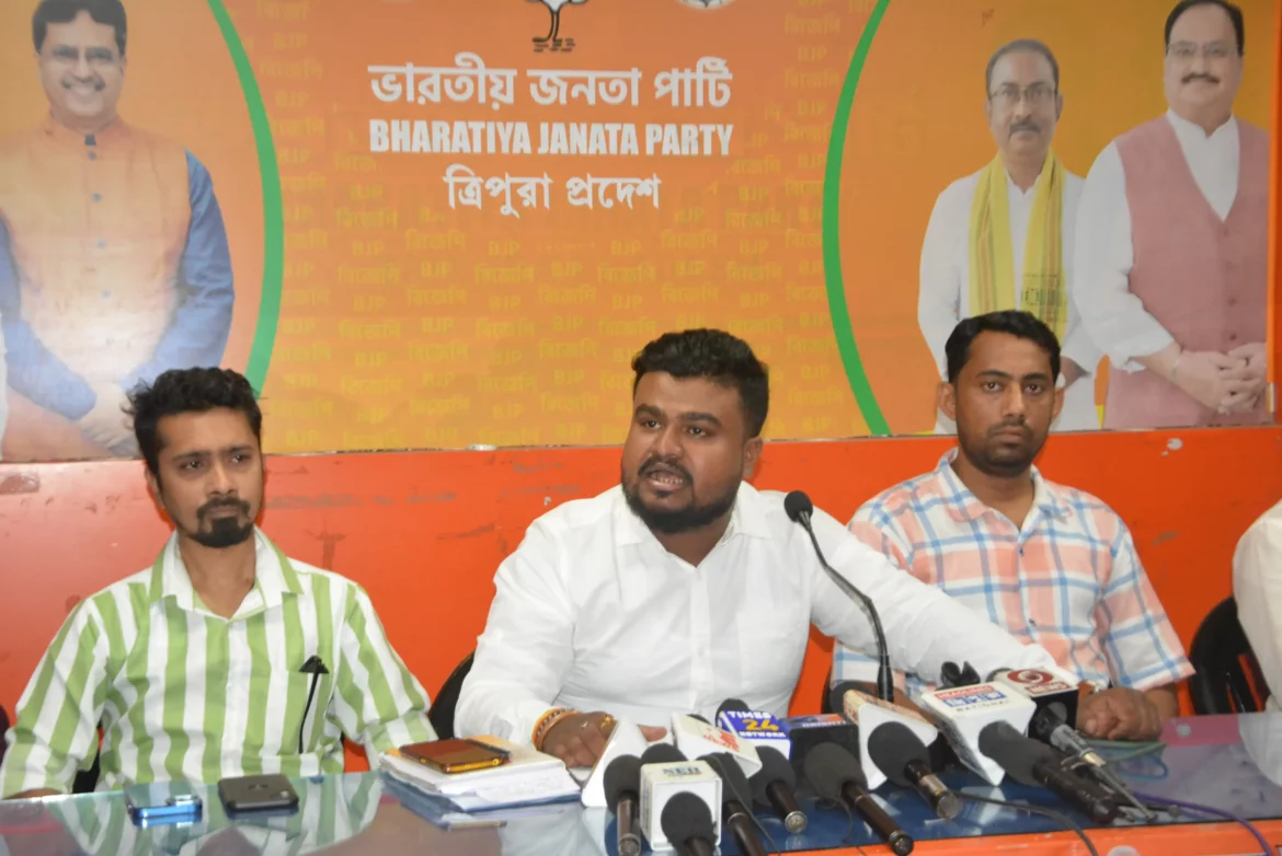 ত্রিপুরা আগরতলা : শিক্ষা থেকে স্বাস্থ্য-আইনশৃঙ্খলার নিয়ে বিভিন্ন জায়গায় আন্দোলন চালিয়ে যাচ্ছে বাম ছাত্র- যুব সংগঠন গুলি।অভিযোগ তারা অপপ্রচার চালাচ্ছে এসব নিয়ে। বামপন্থী ছাত্র-যুব সংগঠন গুলির অপপ্রচারের পাল্টা এবার পথে নামছে শাসক দলের যুব সংগঠন। বৃহস্পতিবার সাংবাদিক সম্মেলনে কর্মসূচী ঘোষণা দেন নেতৃত্ব।প্রদেশ বিজেপি কার্যালয়ে সাংবাদিক সম্মেলন করেন প্রদেশ যুব মোর্চা মুখপাত্র অম্লান মুখার্জি,প্রদেশ যুব মোর্চার সহ-সভাপতি ভিকি প্রসাদ, অরুনাভ নন্দী, প্রসেনজিৎ ঘোষ, সম্পাদক শুভঙ্কর সাহা।তারা এদিন বলেন, বিজেপি সরকার প্রতিষ্ঠা হওয়ার পর এখনো পর্যন্ত স্বচ্ছতার মাধ্যমে প্রায় ৬ হাজার ৭৬৬ জনকে টেট পরীক্ষার মাধ্যমে চাকুরি দেওয়া হয়েছে। যুব নেতৃত্ব এদিন ঘোষণা দেন বাম ছাত্র যুবদের অপপ্রচারের বিরুদ্ধে তারা রাস্তায় নামবেন। ১ জুন সারা রাজ্যে প্রতিটি মণ্ডলে প্রতিবাদ মিছিল করবে। আগরতলায় হবে কেন্দ্রীয় ভাবে কর্মসূচী।