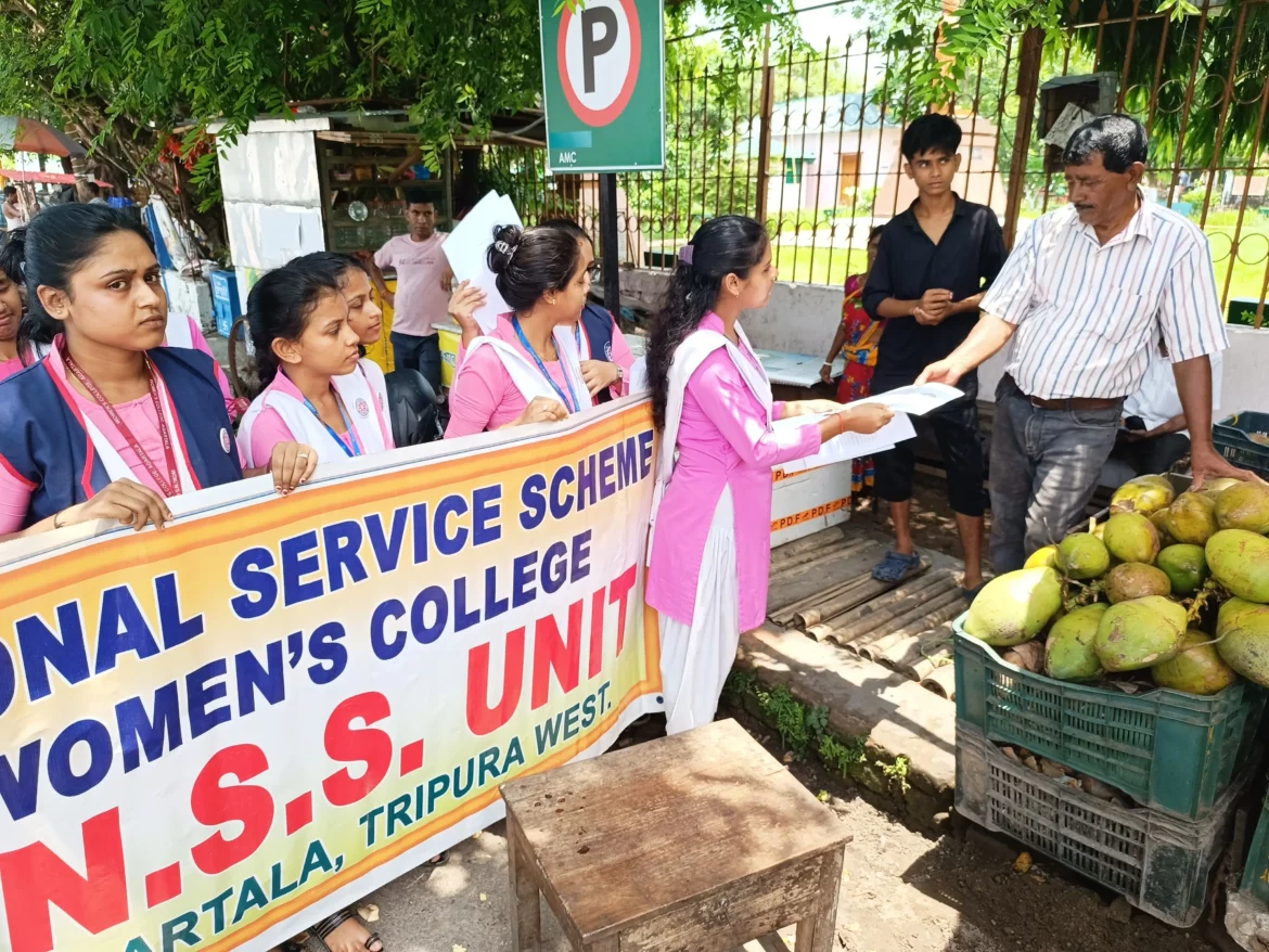 ত্রিপুরা আগরতলা : তামাক সেবন স্বাস্থ্যের পক্ষে ক্ষতিকর। তামাক সেবনে ক্যান্সার সহ বিভিন্ন রোগ দেখা দেয়। তাই সচেতনতার মাধ্যমে মানুষকে তামাক সেবন থেকে দূরে রাখা সম্ভব। সেজন্য রাজ্যের মানুষকে বেশি করে সচেতন করে তুলতে প্রতিবছরের মতো এবারো ৩১ মে কর্মসূচী গ্রহণ করে রাজধানীর মহিলা মহাবিদ্যালয়ের এন এস এস ইউনিট। তামাক বিরোধী দিবসে এবছরও কলেজের এন এস এস ইউনিট সচেতনতা মূলক কর্মসূচী নিয়ে রাজপথে নামে। পথচলতি লোকজন, দোকানি সহ বিভিন্ন পেশার লোকজনের হাতে তামাকের অপকারিতা তুলে ধরে লিফলেট বিলি করেন স্বেচ্ছাসেবকরা। আগামিদিনেও এ ধরণের কর্মসূচী জারি থাকবে বলে জানান ইউনিটের প্রোগ্রাম অফিসার রমা চক্রবর্তী। উল্লেখ্য বছরের বিভিন্ন সময়ে সামাজিক কাজে বরাবর এগিয়ে আসে মহিলা মহাবিদ্যালয়ের এন এস এস ইউনিট।