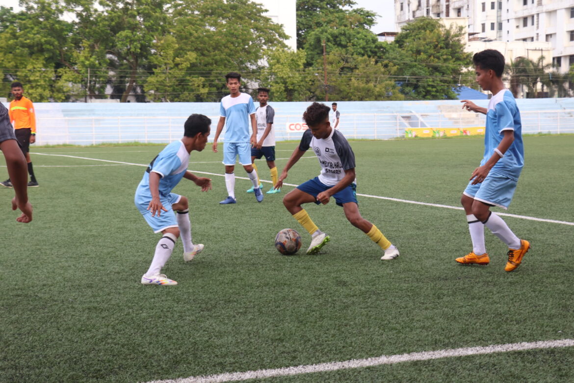ত্রিপুরা আগরতলা : সি ডিভিশনে ইতিহাস গড়ল সরোজ সংঘ। ত্রিপুরা ফুটবল এসোসিয়েশন পরিচালিত ঘরোয়া সি-ডিভিশন লিগ ফুটবল প্রতিযোগিতায় ৭ ম্যাচে টানা জয়ী হয়ে ইতিহাস গড়লো সরোজ সংঘ। বুধবার উমাকান্ত মিনি স্টেডিয়ামে দিনের প্রথম ম্যাচে বি-গ্রুপের লড়াইয়ে মুখোমুখি হয় উমাকান্ত কোচিং সেন্টার ও সরোজ সংঘ।যদিও উভয় দলের কাছে এদিনের ম্যাচটি ছিলো নিয়ম রক্ষার। কারণ লিগে বি-গ্রুপের লড়াই থেকে টানা ৬ ম্যাচ জয় তুলে নিয়ে প্রথমেই ফাইনালে জায়গা করে নিয়োছিলো সরোজ সংঘ। অন্যদিকে ৬ ম্যাচে ৩ টি জয় নিয়ে আসর থেকে ছিটকে গিয়েছিলো উমাকান্ত কোচিং সেন্টার। কিন্তু নিজেদের শেষ ম্যাচেও উমাকান্ত কোচিং সেন্টারকে ৪-০ গোলের ব্যবধানে পরাজিত করে লিগ শেষ করলো সরোজ সংঘ। ম্যাচে সরোজ সংঘের হয়ে গোল চারটি করেন খেলার ৭ ও ৩৯ মিনিটে বিপটোর জমাতিয়া, ৬২ মিনিটে বিকন চাকমা ও ৮০ মিনিটে প্রীতম সরকার। বুধবার বি-গ্রুপের লিগ পর্ব শেষ হলো সরোজ সংঘ ও উমাকান্ত কোচিং সেন্টার এর ম্যাচটির মধ্যদিয়ে।অন্যদিকে এ-গ্রুপের লড়াইয়ে দিনের দ্বিতীয় ম্যাচে মুখোমুখি হয় কেশব সংঘ ও ইয়ুথ ক্লাব। বি-গ্রুপের মতো এ-গ্রুপের ম্যাচটি ছিলো উভয় দলের কাছে নিয়ম রক্ষার।এই ম্যাচে ৩-২ গোলের ব্যবধানে ইয়ুথ ক্লাবকে পরাজিত করে কেশব সংঘ।
