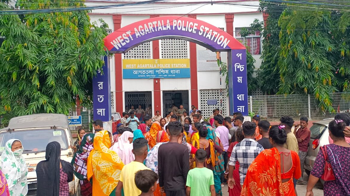 ত্রিপুরা আগরতলা : দুই যুবককে গ্রেপ্তারের প্রতিবাদে পশ্চিম আগরতলা থানায় বিক্ষোভ দেখালেন ধৃতদের পরিবারের লোকজন।পুলিস আন্দোলনকারীদের সঙ্গে কথা বলার পরে পরিস্থিতি স্বাভাবিক হয়। জানা গেছে কোন একটি মামলায় রাজধানীর বর্ডার গোলচক্কর এলাকার ঝুটন ও সুমন মিয়াকে রবিবার রাতে খোঁজে আসে পশ্চিম আগরতলা থানার পুলিস। কিন্তু তারা সামাজিক একটি অনুষ্ঠানে অন্যত্র ছিল। স্বাভাবিক ভাবেই পুলিসের তরফে পরিবারের লোকজনকে বলা হয় সোমবার থানার এসে যোগাযোগ করতে। সেই মতো সোমবার ঝুটন মিয়া ও সুমন মিয়া পশ্চিম আগরতলা থানায় দেখা করতে এলে আটক করে। দুইজনকে এনসিসি থানায় পাঠিয়ে দেয়।ঘটনা জানতে পেরে দুই যুবকের পরিবারের লোকজন পশ্চিম থানায় এসে বিক্ষোভ দেখাতে থাকেন।তাদের অভিযোগ কোন কারণ না বলেই পুলিস নির্দোষ দুই যুবককে আটক করেছে। তাই এদের ছেড়ে দিতে হবে। বিনা কারণে কাউকে আটকে রাখা যায় না। বেশকিছু সময় দুই যুবকের পরিবার ও স্থানীয় কিছু লোক এসে বিক্ষোভ দেখায় থানা ঘেরাও করে।