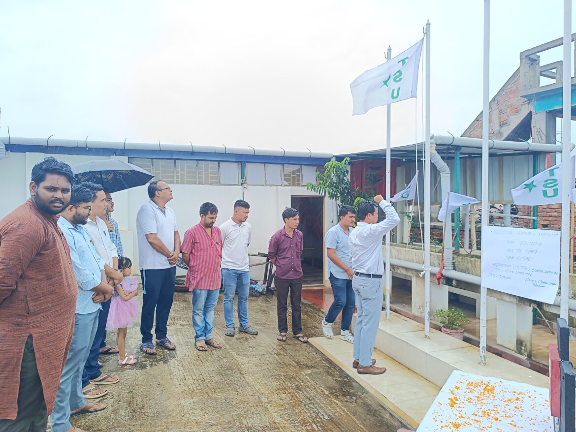আগরতলা : ১৯৭৮ সালে দুইদিন ব্যাপী খোয়াইয়ে সম্মেলনের মধ্যদিয়ে প্তহচল শুরু করেছিল বাম উপজাতি ছাত্র সংগঠন টি এস ইউ। প্রতিবছর সংগঠনের জন্মদিন শ্রদ্ধা শপথে পালন করে থাকেন কর্মীরা। এবছর টি এস ইউর ৪৭ তম প্রতিষ্ঠা দিবস। প্রতি বছরের মতো এবারো সংগঠনের প্রতিষ্ঠা দিবস পালন করা হয় মেলারমাঠ ছাত্র-যুব ভবনে।পতাকা উত্তোলনের পাশাপাশি শহীদ বেদীতে মাল্যদান করেন নেতৃত্ব। প্রতিষ্ঠা দিবসে তাদের স্লোগান শিক্ষা বাঁচাও, রাজ্য বাঁচাও এবং ভবিষ্যৎ বাঁচাও।এদিন অনুষ্ঠানে উপস্থিত ছিলেন টি এস ইউর কেন্দ্রীয় কমিটির সাধারণ সম্পাদক সুজিত ত্রিপুরা সহ অন্যরা।