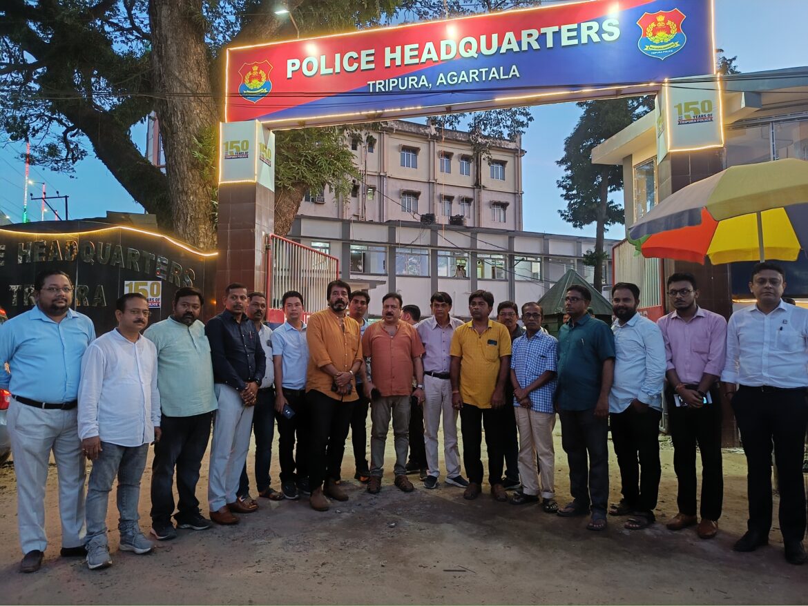 আগরতলা : আগামী দিনে সাংবাদিকদের উপর কোন আক্রমণের ঘটনা ঘটলে রাজ্য জুড়ে আন্দোলনে নামবে সাংবাদিকরা। সোমবার পুলিস সদরে ডেপুটেশন দিতে গিয়ে এই বার্তা দিয়ে রাখলেন সাংবাদিকদের বিভিন্ন সংগঠনের নেতৃত্ব। রবিবার রাজধানীতে মাঝরাতে সাংবাদিক, চিত্র সাংবাদিক আক্রমণের ঘটনায় ইতিমধ্যে গ্রেপ্তার তিনজন। ঘটনায় সব অভিযুক্তদের গ্রেপ্তার ও শাস্তির দাবি জানিয়ে ডিজি ইন্টেলিজেন্সের সঙ্গে সাক্ষাৎ বিভিন্ন সংবাদ মাধ্যমের সম্পাদক ও সংগঠনের।রবিবার মাঝরাতে সাংবাদিক আক্রমণের ঘটনা ঘটে খোদ রাজধানীতে। ঘটনাটি ঘটে মাঝরাতে মঠ চৌমুহনী এলাকায়। রাত প্রায় আনুমানিক ১টা ১৫ মিনিট নাগাদ মঠ চৌমহনী এলাকায় কিছু দুষ্কৃতির হাতে আক্রান্ত হয় কর্তব্যরত ৪-৫ জন সাংবাদিক ও চিত্র সাংবাদিক। অভিযোগ রাতে সাংবাদিকরা পেশা দায়িত্ব পালন করতে যাওয়ার সময় হঠাৎ একটি গাড়ি থেকে দুজন ব্যক্তি আচমকায় নেমে মারধর করে প্রসেনজিৎ ভট্টাচার্য নামে এক সাংবাদিককে। তাকে বাঁচাতে গেলে আরো অন্য সাংবাদিকদের উপর আক্রমণ করে দুষ্কৃতকারীরা। সাংবাদিকরা একজন আক্রমণকারীকে আটক করে। বাকিরা পালিয়ে যায়। ঘটনা জানতে পেরে সাথে সাথে পূর্ব থানার পুলিশ ঘটনাস্থলে ছুটে আসেন। একজন দুষ্কৃতকারীকে থানায় নিয়ে যায়। অভিযোগ অভিযুক্তরা শাসক দলের লোক বলে জানা গেছে। এই ঘটনার প্রতিবাদ জানিয়ে সোমবার বিভিন্ন সংবাদ মাধ্যমের সম্পাদক ও সাংবাদিকদের বিভিন্ন সংগঠন সরব হন। তারা বিকেলে পুলিস সদরে ডি জি ইন্টেলিজেন্স অনুরাগ ধ্যানকরের সঙ্গে সাক্ষাৎ করেন। প্রতিনিধি দলে ছিলেন বরিষ্ঠ বরিষ্ঠ সাংবাদিক জয়ন্ত ভট্টাচার্য, শানিত দেবরায়, নিউজ টুডের সম্পাদক সৌরজিত পাল, হেডলাইন্স ত্রিপুরার সম্পাদক প্রণব সরকার, সহ অন্যরা।