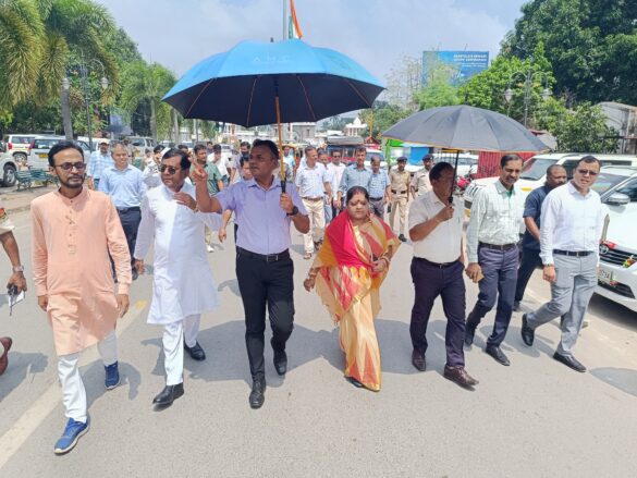 আগরতলা : রাজধানীর সিটি সেন্টার নয়, এবার মায়ের গমন অনুষ্ঠানের স্থান পরিবর্তন হতে চলছে। সম্ভবত তুলসীবতি স্কুলের সামনে হতে যাচ্ছে মায়ের গমন অনুষ্ঠান। বৃহস্পতিবার মায়ের গমন অনুষ্ঠানের জন্য জায়গা ঘুরে দেখলেন পুর নিগমের মেয়র দীপক মজুমদার, তথ্য সংস্কৃতি দপ্তরের সচিব পি কে চক্রবর্তী , কমিশনার শৈলেশ কুমার যাদব, পশ্চিম জেলার জেলা শাসক ডাঃ বিশাল কুমার সহ অন্যান্য আধিকারিকরা। সম্প্রতি মায়ের গমন অনুষ্ঠানকে সামনে রেখে প্রস্তুতি বৈঠক হয়। সেই বৈঠকে মুখ্যমন্ত্রী সিটি সেন্টারের সামনের পরিবর্তে তুলসিবতী স্কুলের সামনে মায়ের গমন অনুষ্ঠান করার প্রস্তাব দেন। সেই প্রস্তাব মতো মায়ের গমন অনুষ্ঠানের জন্য বৃহস্পতিবার তারা তুলসিবতী স্কুলের সামনের জায়গা সরেজমিনে ঘুরে দেখেন। পরে তথ্য ও সংস্কৃতি দপ্তরের সচিব পি কে চক্রবর্তী জানান সিটি সেন্টারের সামনের রাস্তা প্রশস্ত কম তাই তুলসিবতী স্কুলের সামনে মায়ের গমন অনুষ্ঠান করার পরিকল্পনা নেওয়া হয়েছে। ২২ সেপ্টেম্বর বিকালে সকল ক্লাব সহ বিভিন্ন দপ্তরের আধিকারিকদের নিয়ে বৈঠক করা হবে। সেই বৈঠকে মায়ের গমন অনুষ্ঠান কোন জায়গায় করা হবে, সেই বিষয়ে চূড়ান্ত সিদ্ধান্ত গ্রহণ করা হবে।