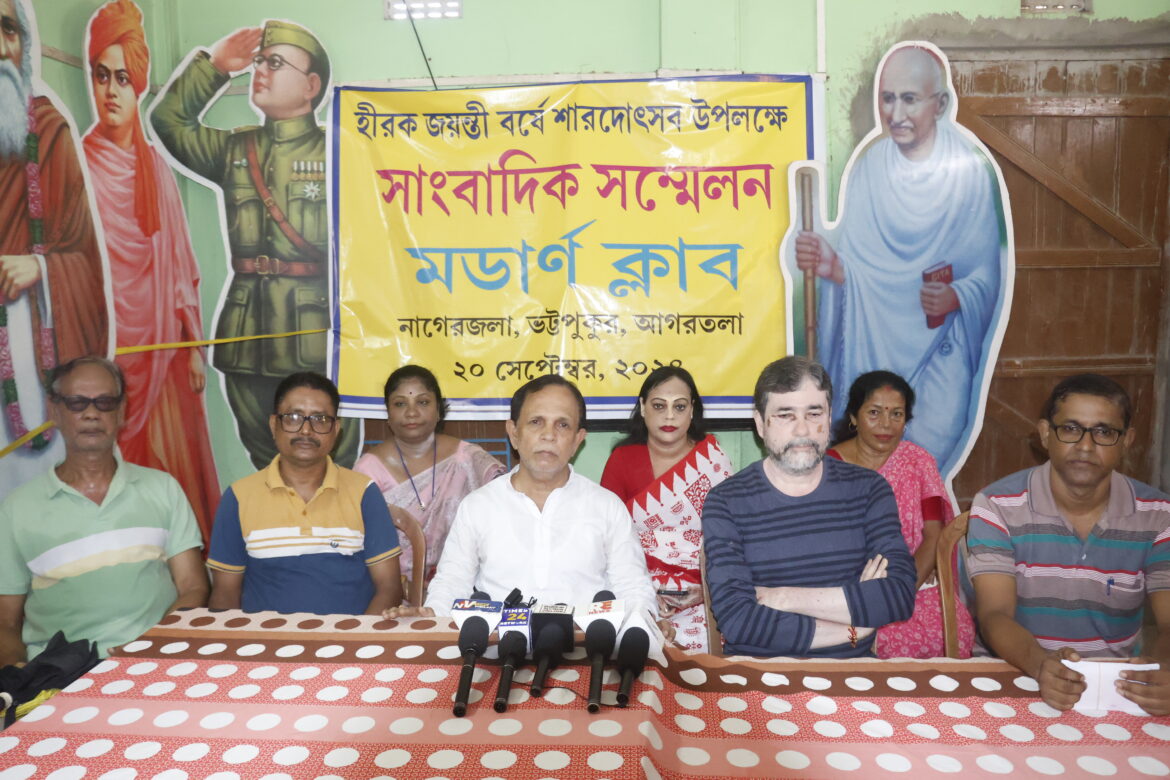 আগরতলা : হাতে সময় কম। সামনেই বাঙালীর শ্রেষ্ঠ উৎসব দুর্গা পূজা।মডার্ন ক্লাবও এবছর শারদ উৎসবে ব্রতী হচ্ছে।৭ অক্টোবর মডার্ন ক্লাবের শারদ উৎসবের মন্ডপ ও ক্লাবের শারদ স্মরণিকা প্রতিবিম্বের আনুষ্ঠানিক উদ্বোধন হবে। উদ্বোধক হিসেবে উপস্থিত থাকবেন মুখ্যমন্ত্রী ডাঃ মানিক সাহা, আগরতলা পুর নিগমের মেয়র দীপক মজুমদার। শুক্রবার মডার্ন ক্লাব প্রাঙ্গণে সাংবাদিক সম্মেলন করে একথা জানান এবারের পূজা কমিটির সম্পাদক আশিস দেব সহ অন্যান্যরা।রাজধানীর নাগেরজলাস্থিত মডার্ন ক্লাব সাড়ম্বরে শারদ উৎসবের আয়োজন করতে চলেছে। কিন্তু মডার্ন ক্লাবের হীরক জয়ন্তী বর্ষ উপলক্ষে বিভিন্ন কর্মসূচী গ্রহণ করা হয়েছে। তারমধ্যে অন্যতম হচ্ছে রাজ্যে প্রকাশিত শারদ স্মরণিকা গুলির মধ্যে সেরা পাঁচটি স্মরণিকাকে ট্রফি ও নগদ অর্থ পুরস্কার দেওয়া।রাজ্যের বিশিষ্ট লেখক, কবি, শিল্পী, সাহিত্যিক সাংবাদিক ও বুদ্ধিজীবীদের নিয়ে গঠিত বিচারক মন্ডলী সেরা স্মরণিকা গুলি নির্বাচন করবেন।