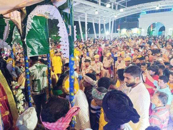 আগরতলা : প্রথা মেনে বিশুদ্ধ পঞ্জিকা মতে রাজধানীর ঐতিহ্যবাহী দুর্গাবাড়িতে হল দশমী পূজা। রীতি মেনে তিথি অনুযায়ী শনিবার রাজধানীর দুর্গা বাড়িতে হয় দশমী পুজা। এদিন সকালে দুর্গা বাড়িতে হয় দশমী পূজা। পুজা শেষে মায়ের দর্পণ বিসর্জন দেওয়া হয়। দুর্গা বাড়ির পুরোহিত জানান এদিন সকালে প্রথমে মায়ের অধিক নবমী তিথির পূজা হয়েছে। তারপর বলিদান পর্ব ও হোম যজ্ঞ হয়েছে। হোম যজ্ঞ শেষে মাকে ভোগ দেওয়া হয়। তারপর হয় আরতি। আরতি শেষে দশমী পূজা সম্পন্ন হয়। এর পরে দর্পণ বিসর্জন দেওয়া হয়। সকাল ৯ টা ৩০ মিনিটে ঘট চলে যায় রাজবাড়িতে। নারায়ন চলে যায় লক্ষ্মীনারায়ন বাড়িতে। সন্ধ্যা ৬ টায় আরতী শেষে শুরু হবে দশমী যাত্রা। রাষ্ট্রীয় সেলামী সহকারে দুর্গা মা বাইরে বের হবেন। শহর পরিক্রমা করে দশমীঘাটে চলে যাবে প্রতিমা। সেখানে গঙ্গা পূজা শেষে মায়ের নিরঞ্জন পর্ব সম্পন্ন হবে।প্রতিবছর দুর্গা বাড়ির মায়ের দশমী দেখতে প্রচুর মানুষ ভিড় করেন।