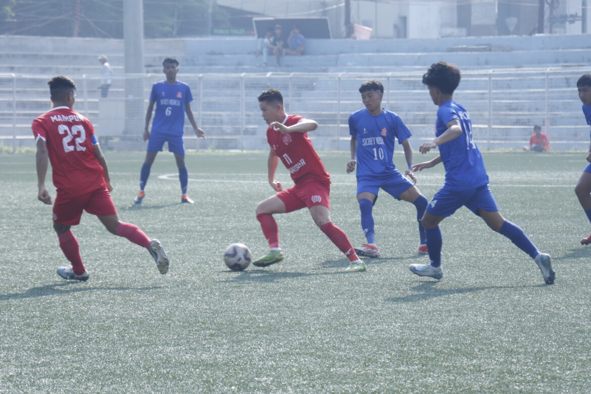 আগরতলা : রাজধানীর উমাকান্ত মিনি স্টেডিয়ামে শুরু হয়েছে ৭৮ তম জাতীয় সন্তোষ ট্রফি ফুটবল টুর্নামেন্টের ডি গ্রুপের খেলা। ডি গ্রুপে মোট চারটি দল পরস্পরের মুখোমুখি হবে। দল গুলি হল মনিপুর, মিজোরাম, সিকিম ও ত্রিপুরা। শুক্রবার সকালে ত্রিপুরা ফুটবল এসোসিয়েশনের পতাকা উত্তোলন করে খেলার উদ্বোধন করেন ত্রিপুরা ফুটবল অ্যাসোসিয়েশনের সভাপতি প্রণব সরকার। উপস্থিত ছিলেন টিএফএ-র সচিব অমিত চৌধুরী সহ অন্যান্যরা। উদ্বোধনের পর অতিথিরা উদ্বোধনি ম্যাচে অংশগ্রহণকারি উভয় দলের খেলোয়াড়দের সাথে পরিচিত হন। উদ্বোধনী ম্যাচে মনিপুরের মুখোমুখি হয় সিকিম। খেলায় মনিপুর ৬-১ গোলের ব্যবধানে সিকিমকে পরাজিত করে।