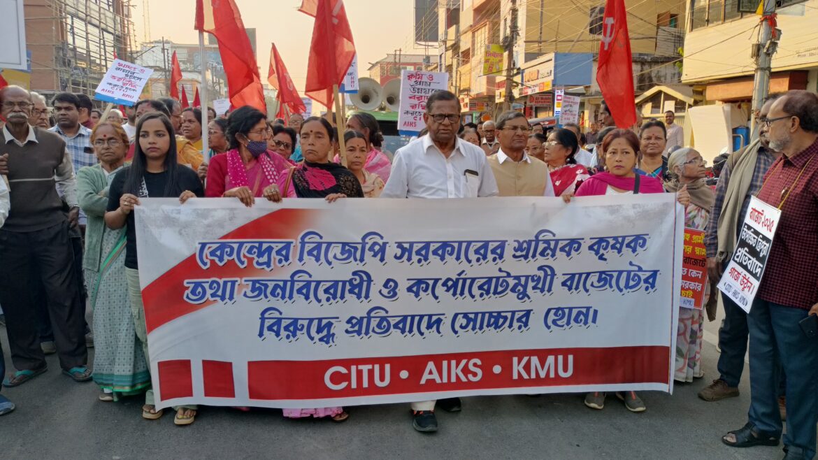 কেন্দ্রের বাজেটের বিরুদ্ধে রাজপথে বাম শ্রমিক- কৃষক ক্ষেতমজুর সংগঠন