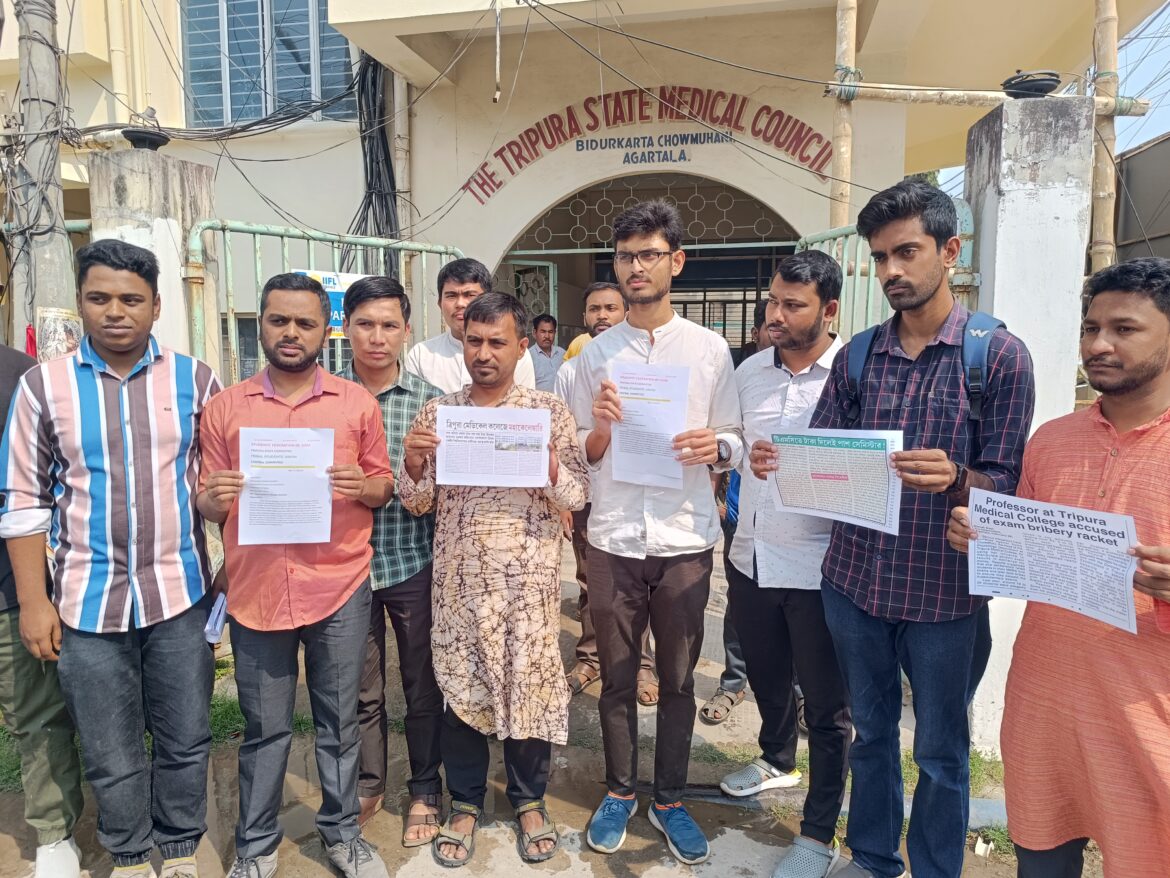 আগরতলা : পড়ুয়াদের পাস করিয়ে দেওয়ার কথা বলে টি এম সিতে অর্থ নেওয়ার অভিযোগের উচ্চ পর্যায়ের তদন্ত দাবি বাম দুই ছাত্র সংগঠন এসএফআই- টিএসইউর।দুই সংগঠনের তরফে শনিবার মেডিক্যাল শিক্ষা অধিকর্তার কাছে স্মারকলিপি জমা দেওয়া হয়। অভিযোগ ত্রিপুরা মেডিক্যাল কলেজে মোটা অঙ্কের অর্থের বিনিময়ে পড়ুয়াদের পাস করিয়ে দেওয়া হচ্ছে। কলেজের ফিজিওলজি বিভাগের প্রধান অধ্যাপিকা ডাঃ সোমা চৌধুরীর বিরুদ্ধে এই চাঞ্চল্যকর অভিযোগ ইতিমধ্যে সামনে এসেছে। কলেজের অধ্যক্ষের নিকট ইতিমধ্যে তিন পড়ুয়া লিখিত অভিযোগ জানিয়েছেন বলে খবর। এই সংবাদ প্রকাশ্যে আসার পর কলেজের আধিকারিকদের দৌড়ঝাঁপ শুরু হয় গেছে। গোটা ঘটনাকে ধামা চাপা দেওয়ার চেষ্টা চলছে বলে অভিযোগ। এই ঘটনার প্রতিবাদে এইবার সরব হল বামপন্থী ছাত্র সংগঠন এসএফআই ও টিএসইউ। শনিবার এসএফআই ও টিএসইউ-র পক্ষ থেকে মেডিক্যাল এডুকেশনের অধিকর্তার নিকট ডেপুটেশান প্রদান করা হয়। প্রতিনিধি দলের নেতৃত্বে ছিলেন এসএফআই-র রাজ্য সম্পাদক সন্দীপন দেব, টি এস ইউর সাধারণ সম্পাদক সুজিত ত্রিপুরা সহ অন্যরা।