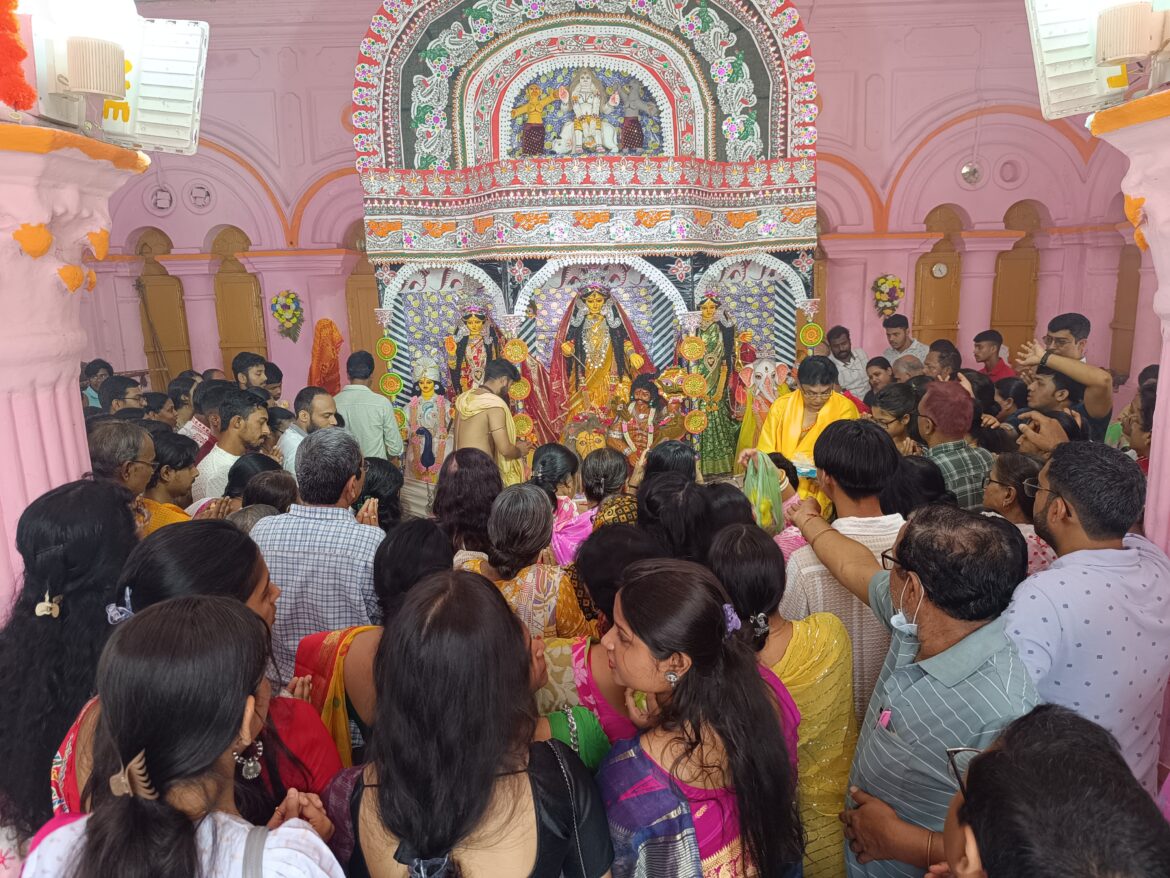 আগরতলা : রাজন্য স্মৃতি বিজড়িত ঐতিহ্যবাহী রাজধানীর দুর্গাবাড়িতে প্রতিবছরের মতো এবারো হচ্ছে বাসন্তী পূজা। শুক্রবার সকালে রীতি নীতি মেনে হয় সপ্তমী পূজা। সকাল থেকে শহরের বিভিন্ন জায়গা থেকে লোকজন ভিড় জমান। পূজা শেষে অঞ্জলি প্রদান করা হয়।প্রচুর লোকজন অঞ্জলি নেন। দুর্গা বাড়ির পুরোহিত জানান সপ্তমী পূজা শেষে বলী দেওয়া হয়। দুপুরে মাকে ভোগ দেওয়া হয়। সন্ধ্যা ৭ টায় সন্ধ্যা আরতি। রাজ আমল থেকে দুর্গা বাড়িতে বাসন্তী পূজা হয়ে আসছে। এদিকে বাসন্তী পূজা উপলক্ষে প্রতিদিন প্রচুর লোকজন ভিড় জমান। সকাল থেকে সন্ধ্যা পর্যন্ত বিভিন্ন বয়সের লোক দুর্গাবাড়িতে এসে আনন্দে গা ভাসান এবং মায়ের আশীর্বাদ নেন।