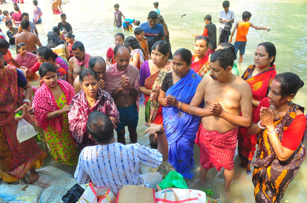 আগরতলা : নিয়ম নিষ্ঠার সঙ্গে শনিবার সম্পন্ন বাসন্তী পূজার অষ্টমী। এদিন সকালেই রীতি মেনে পূজা হয় রাজ্যের বিভিন্ন জায়গার সঙ্গে আগরতলায় হয় অষ্টমী স্নান।বাসন্তী মহা অষ্টমীতে পুণ্য লাভের আশায় এইদিন প্রতাপগড় হাওড়া নদীতে স্নান করেন অসংখ্য ভক্ত। পাশাপাশি তারা হাওড়া নদীতে স্নান করে পূর্ব পুরুষদের উদ্দেশ্যে তিল ও ফল দান করেন। এদিন বিভিন্ন বয়সের পুরুষ ও মহিলারা হাওড়া নদীতে অষ্টমীর স্নান করেন। কথিত আছে অষ্টমীর দিনে মা বাবার নামে স্নান করে শ্রাদ্ধানুষ্ঠান করলে মা-বাবার আত্মার শান্তি হয়। এদিন অষ্টমী স্নান ঘিরে বিভিন্ন জায়গা থেকে সেখানে লোকজন আসেন। তাদের মধ্যে উৎসাহ লক্ষ্য করা যায়।