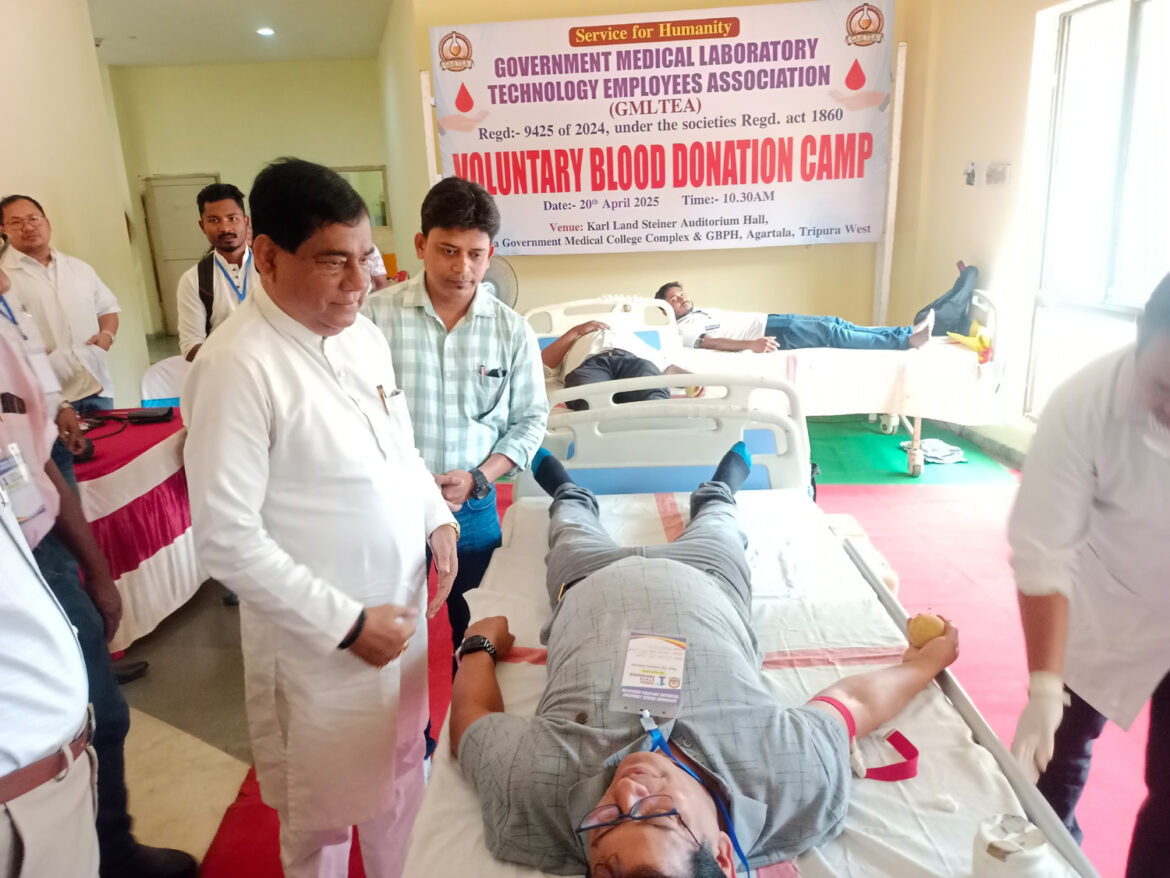 আগরতলা : গভর্নমেন্ট মেডিক্যাল ল্যাবরেটরি টেকনোলজি এমপ্লয়িজ অ্যাসোসিয়েশনের প্রথম ত্রিবার্ষিক রাজ্য সম্মেলন অনুষ্ঠিত হয় রবিবার। জিবি হাসপাতালের কার্লল্যান্ড স্টেইনার অডিটোরিয়াম হলে অনুষ্ঠিত হয় এই সম্মেলন। সম্মেলনের উদ্বোধন করেন আগরতলা পুর নিগমের মেয়র দীপক মজুমদার। উপস্থিত ছিলেন স্বাস্থ্য সচিব কিরণ গিত্তে, হেলথ সার্ভিসের ডাইরেক্টর সৌভিক দেববর্মা সহ অন্যান্যরা। সম্মেলন উপলক্ষ্যে এইদিন আয়োজন করা হয় স্বেচ্ছায় রক্তদান শিবির। শিবিরে বহু রক্তদাতা স্বেচ্ছায় রক্তদান করেন। রক্তদাতাদের উৎসাহ প্রদান করেন মেয়র দীপক মজুমদার। এক সাক্ষাৎকারে দীপক মজুমদার গভর্নমেন্ট মেডিক্যাল ল্যাবরেটরি টেকনোলজি এমপ্লয়িজ অ্যাসোসিয়েশনের সদস্য সদস্যাদের ধন্যবাদ জানান রক্তদান শিবিরের আয়োজন করার জন্য। পাশাপাশি তিনি বলেন চিকিৎসা পরিষেবা প্রদানের ক্ষেত্রে মেডিক্যাল ল্যাবরেটরি টেকনোলজিস্টরা গুরুত্বপূর্ণ ভূমিকা পালন করে যাচ্ছে।