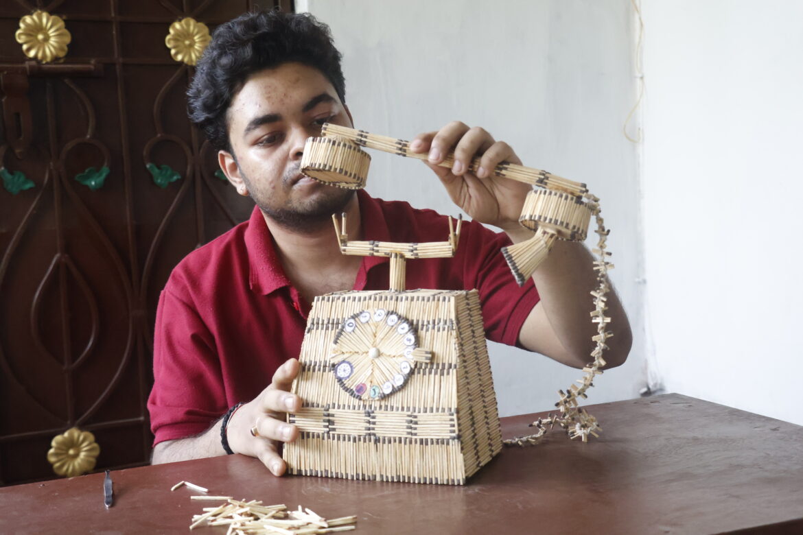 বিশ্ব টেলিকমিউনিকেশন দিবসে দেশলাই কাঠি দিয়ে টেলিফোন তৈরি করলেন বিজয় দেবনাথ