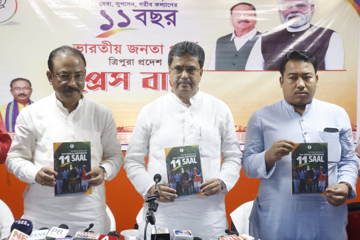 আজ আগরতলার কৃষ্ণনগরে ভারতীয় জনতা পার্টির প্রদেশ কার্যালয়ে আয়োজিত এক সাংবাদিক সম্মেলনে একথা বলেন মুখ্যমন্ত্রী প্রফেসর ডাঃ মানিক সাহা। উল্লেখ্য, প্রধানমন্ত্রী নরেন্দ্র মোদির নেতৃত্বে এনডিএ সরকারের ১১ বছর পূর্তি উপলক্ষে বিভিন্ন গুরুত্বপূর্ণ বিষয় নিয়ে এই সাংবাদিক সম্মেলনের আয়োজন করা হয়।