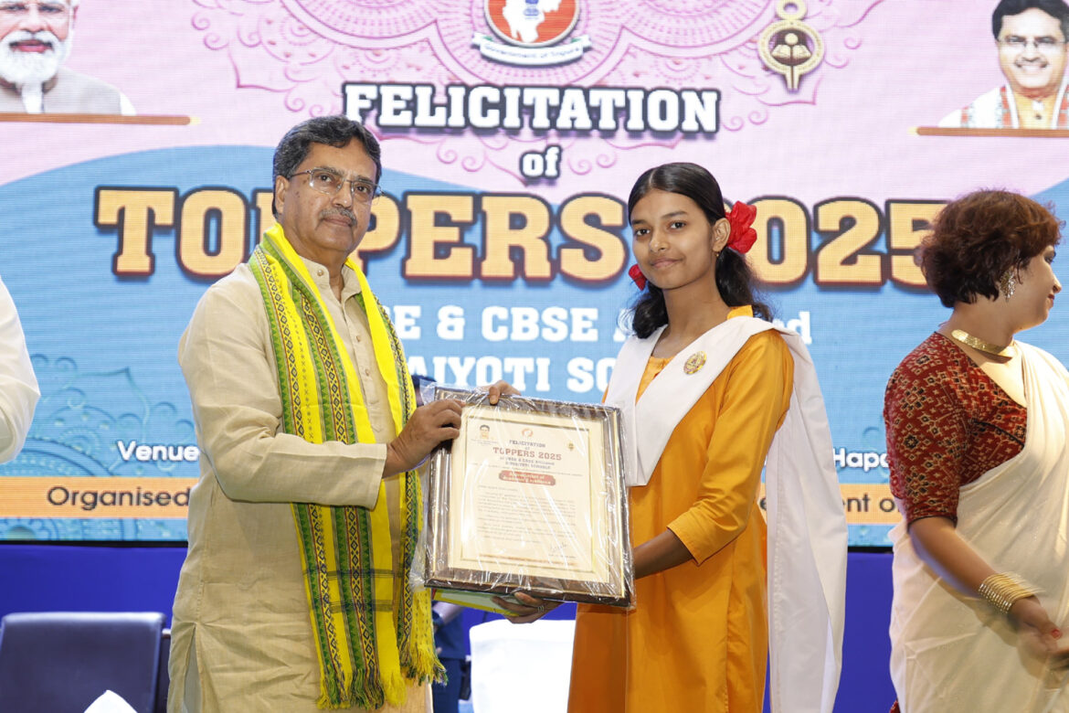 অনুষ্ঠানে মুখ্যমন্ত্রী তথা শিক্ষামন্ত্রী ডাঃ সাহা বলেন, আজ এখানে ২০২৫ মাধ্যমিক ও উচ্চমাধ্যমিক পরীক্ষায় শীর্ষ ১০ – স্থান অধিকারী ছাত্রছাত্রীকে সম্বর্ধনা প্রদান করা হচ্ছে। আজ আমি সত্যিই আনন্দিত। এই ছাত্রছাত্রীদের জন্য ত্রিপুরাবাসী খুবই গর্বিত। আজ যারা ভালো ফলাফল করেছে আগামীদিনে তারাই ত্রিপুরার ভবিষ্যত। দেখা গেছে যেসকল ছাত্রছাত্রীরা ভালো ফল করেছে বাস্তব ক্ষেত্রেও তারা সফল হয়েছে। শুধু ত্রিপুরায় নয়, ভারতবর্ষে এমনকি বিদেশেও তারা স্থান করে নিয়েছে। আজ এখানে মোট ৮২ জনকে সম্বর্ধনা প্রদান করা হবে। এরমধ্যে টিবিএসই’র মাধ্যমিকে ২৫ জন ও উচ্চ মাধ্যমিকে ২০ জন এবং সিবিএসই’র বিদ্যাজ্যোতির অধীনে মাধ্যমিকে ২২ জন ও উচ্চ মাধ্যমিকে ১৫ জন। গত বছর বিদ্যাজ্যোতির ফলাফল নিয়ে উদ্বেগ দেখা দিয়েছিল। কিন্তু এবার অনেক ভালো ফলাফল হয়েছে। কোন কোন জায়গায় ঘাটতি বা ত্রুটি ছিল সেগুলি পূরণ করেই এবার সাফল্য এসেছে। যারা ভালো ফল করেছে আমি তাদের উজ্জ্বল ভবিষ্যত কামনা করছি।
