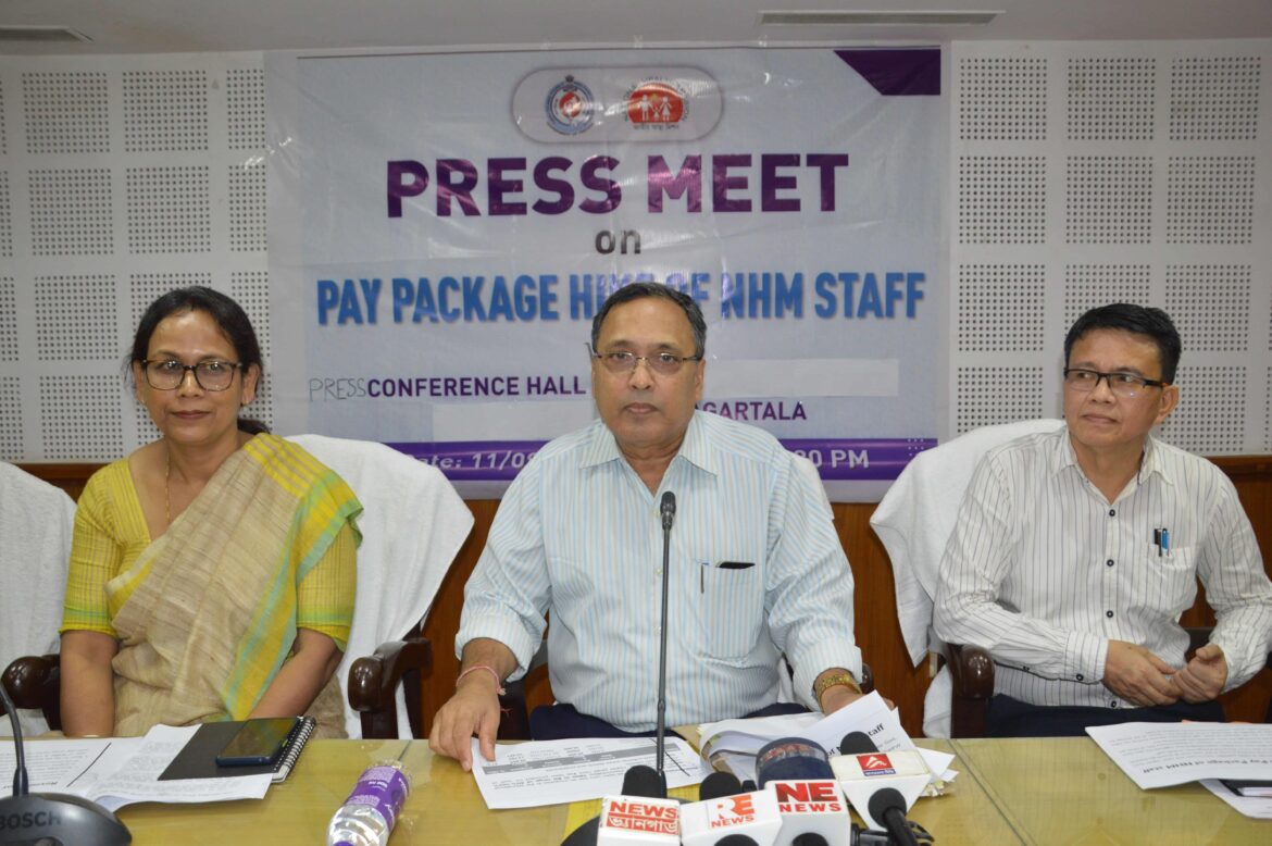 আগরতলা : ত্রিপুরায় কর্মরত চুক্তিবদ্ধ চিকিৎসক এবং কর্মচারীদের বেতন হার বৃদ্ধির সিদ্ধান্ত করার সিদ্ধান্ত নিয়েছে রাজ্য সরকার।সোমবার মহাকরণে সাংবাদিক সম্মেলনে একথা জানান স্বাস্থ্য দপ্তরের সচিব ডাঃ দেবাশিস বসু। জাতীয় স্বাস্থ্য মিশনের ২,০৫১ জন স্টাফ রয়েছে। কেন্দ্রীয় স্বাস্থ্য মন্ত্রকের কাছে প্রস্তাব পাঠানো হয়েছিল তাদের বেতন বৃদ্ধির বিষয়ে স্বাস্থ্য দপ্তর থেকে। তারপর ভারত প্রয়োজনীয় অর্থ এর জন্য প্রস্তাব যায় কেন্দ্রের কাছে। ভারত সরকার সেই প্রস্তাব মেনে নিয়েছে। তারপর জাতীয় স্বাস্থ্য মিশনের সকল স্টাফদের তথ্য সরবরাহ করা হয় ভারত সরকারের কাছে। স্বাস্থ্য সচিব জানান আগে ল্যাব টেকনেসিয়ানরা সবচেয়ে কম বেতন পেত। বর্তমানে তাদের বেতন বৃদ্ধি পেয়েছে। তিনি জানান সিএইচসি লেভেলে যে সকল স্পেশালিষ্ট ডাক্তার রয়েছে তাদেরকে মাসে ১০ হাজার টাকা করে এলাউন্স দেওয়ার ব্যবস্থা করা হয়েছে। নতুন বেতনক্রম অনুসারে অতিরিক্ত অর্থ ব্যয় হবে ১৬.৭৮ কোটি টাকা। রাজ্যে ২০৫১ জন জাতীয় স্বাস্থ্য মিশনের স্টাফ উপকৃত হবেন নতুন বেতন বৃদ্ধির ফলে। চিকিৎসক- কর্মচারীদের বেতন বৃদ্ধির দাবি অনেক দিন আগে থেকেই জানানো হচ্ছিল। অবশেষে বাড়লও তাদের বেতন।