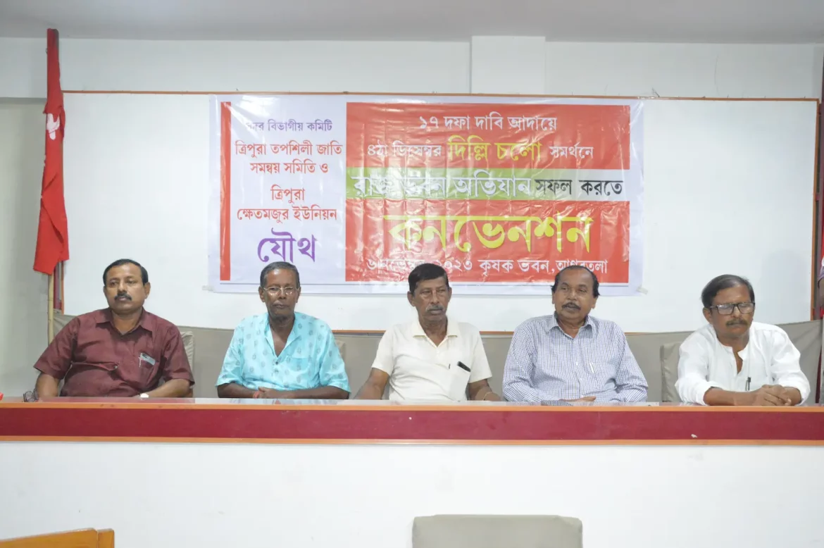 আগরতলা : বর্তমান কেন্দ্রের বিজেপি সরকার দলিতদের অধিকার খ্রব করার চেষ্টা করছে। বিজেপি হল আর এস এসের প্রতিনিধি। আর এই আর এস এস দেশের স্বাধীনতা অর্জনে বাধা তৈরি করেছে। দেশের সংবিধানকে গ্রহণ না করার জন্যও চেষ্টা করেছে। সোমবার মেলারমাঠ কৃষকভবনে এক কনভেনশনে মন্তব্য করলেন ত্রিপুরা তপশিলি জাতি সমন্বয় সমিতির রাজ্য সভাপতি রতন ভৌমিক। চলতি বছরের ৪ ডিসেম্বর দিল্লি চলো অভিযান দলিত শোষণ মুক্তি মঞ্চ ও সারা ভারত কৃষি শ্রমিক ইউনিয়নের উদ্যোগে। দিল্লি চলো অভিযানের সমর্থনে ২৩ নভেম্বর রাজভবন অভিযান ত্রিপুরা ক্ষেতমজুর ইউনিয়ন ও ত্রিপুরা তপশিলি জাতি সমন্বয় সমিতির। একে সফল করতে সোমবার দুই সংগঠনের সদর মহকুমা কমিটির তরফে হয় মেলার মাঠ কৃষক ভবনে কনভেনশন।উপস্থিত ছিলেন দুই সংগঠনের নেতা রতন ভৌমিক, শ্যামল দে, মাধব মজুমদার সহ অন্যরা।
