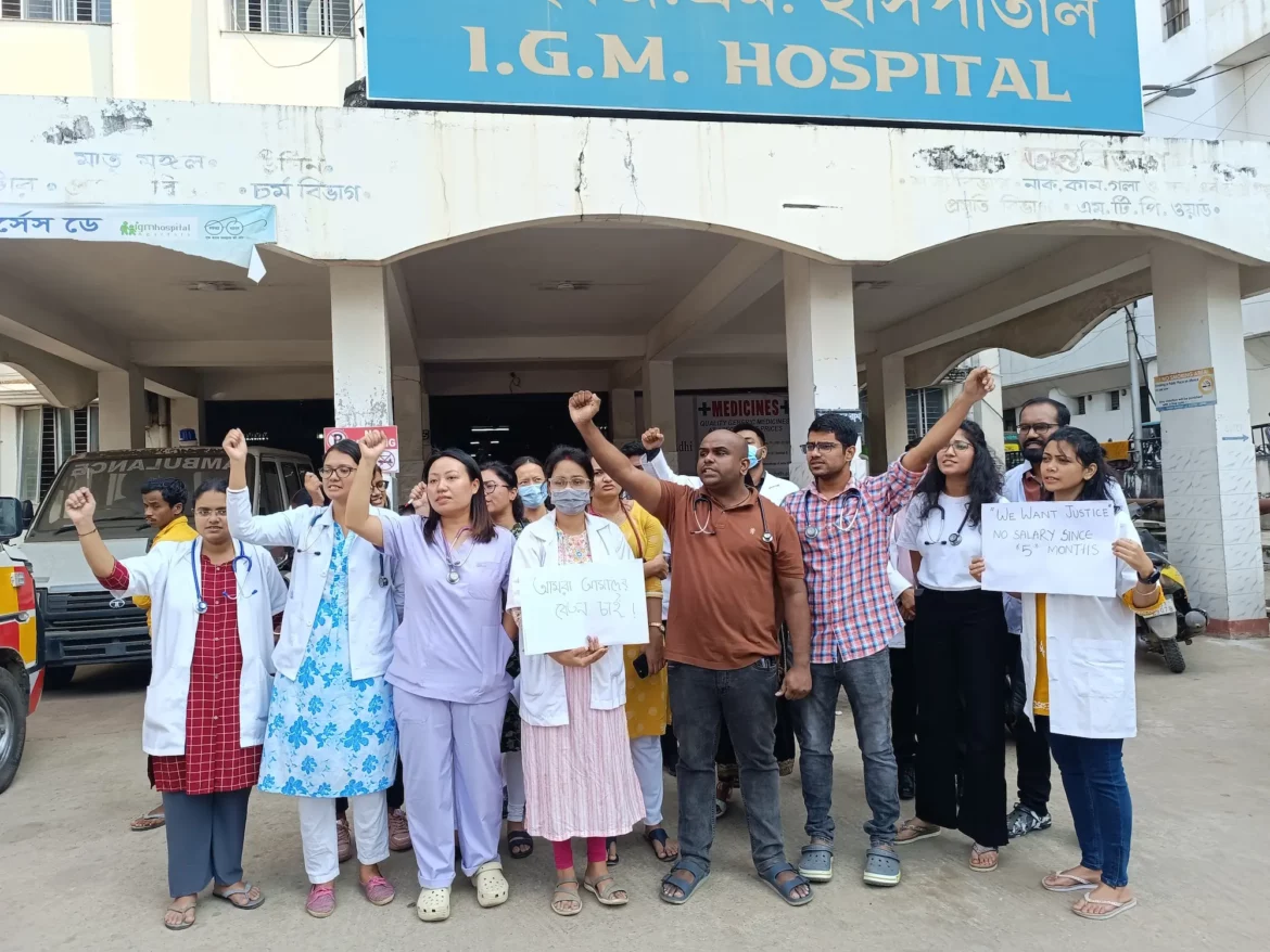 স্টাইপেন্ড ণা মেলায় কর্মবিরতি শুরু করলেন এনবিইএমএস ডিপ্লোমা স্নাতকোত্তর প্রশিক্ষণার্থীরা