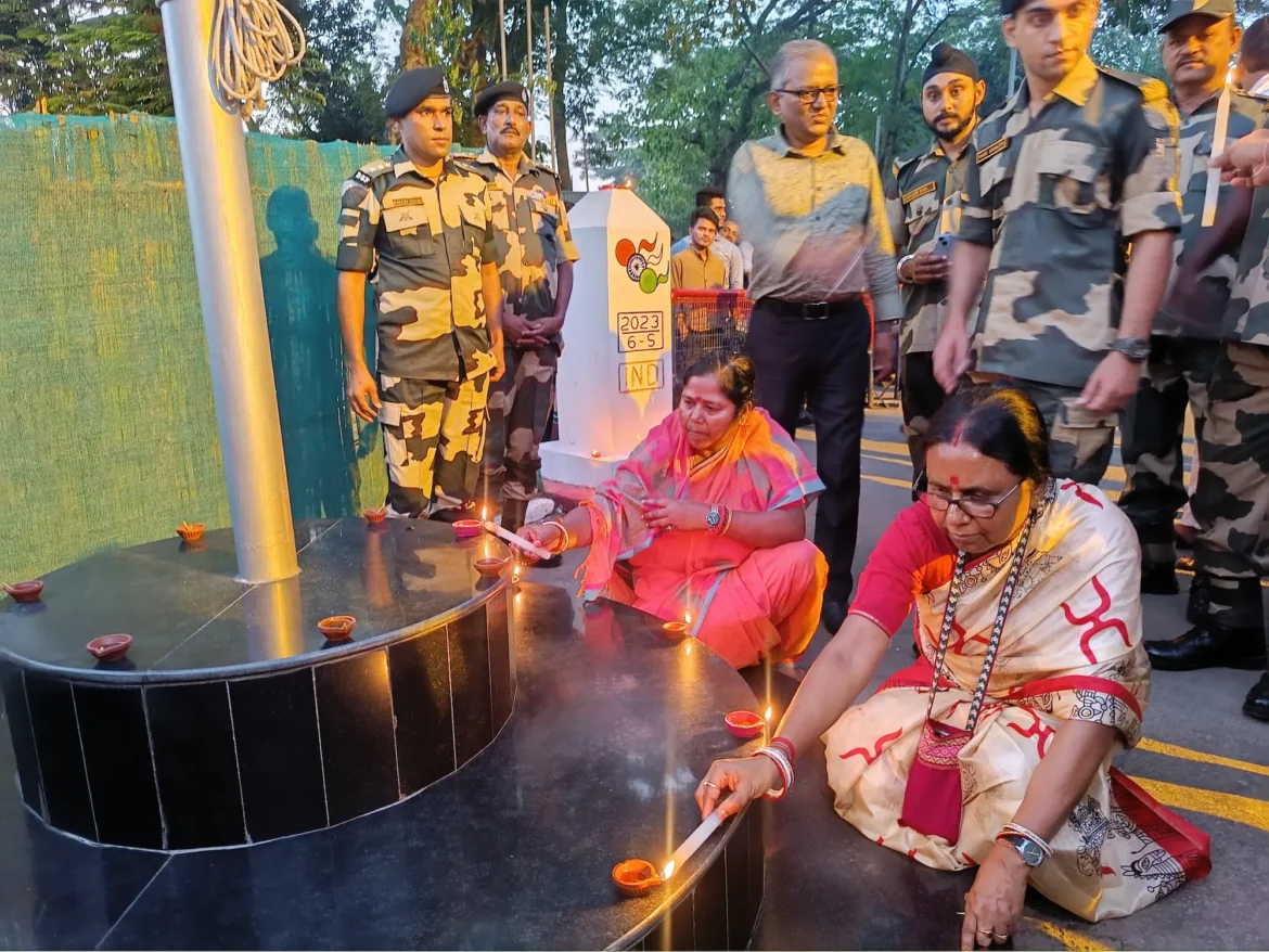 আগরতলা : ভারতীয় সীমান্ত রক্ষী বাহিনীর জওয়ানদের সঙ্গে আলোর উৎসব দীপাবলির আনন্দ ভাগ করে নিলেন কেন্দ্রীয় প্রতি মন্ত্রী প্রতিমা ভৌমিক। রবিবার সন্ধ্যায় আখাউড়া সুসংহত স্থল বন্দরে যান কেন্দ্রীয় প্রতি মন্ত্রী। সিম্নাতে গিয়ে ভারতীয় সিম্নাত রক্ষী বাহিনীর জওয়ানদের সঙ্গে মোম জ্বালিয়ে আলোর উৎসবে মেতে উঠেন।দীপাবলি উপলক্ষে শুভেচ্ছা বিনিময় করেন বি এস এফের পাশাপাশি বাংলাদেশ সীমান্ত রক্ষী বাহিনীর জওয়ানদেরও। তাদের হাতে কেন্দ্রীয় প্রতিমন্ত্রী প্রতিমা ভৌমিক মিষ্টি তুলে দেন। তিনি বলেন গোটা দেশে একসঙ্গে দীপাবলি উৎসব পালন করা হয়। তিনি মায়ের কাছে প্রার্থনা করেন সকলের জীবনে যাতে সুখ সমৃদ্ধি নিয়ে আসে। এদিন সেখানে বি এস এফের বিভিন্ন স্তরের আধিকারিকরাও উপস্থিত ছিলেন।