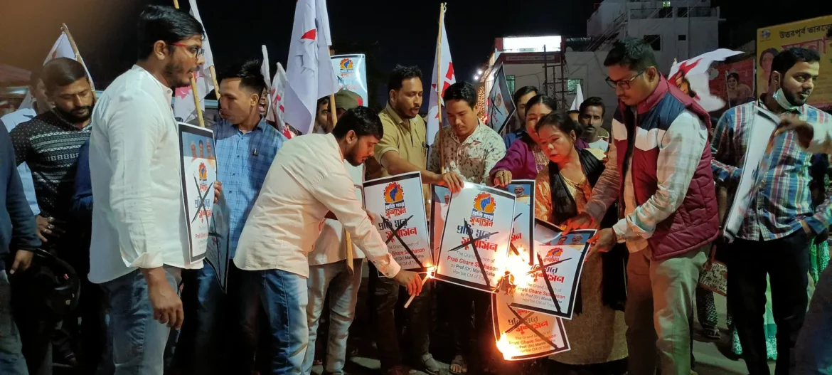 আগরতলায় রাজপথে পোড়ানো হল সুশাসনের প্ল্যাকার্ড