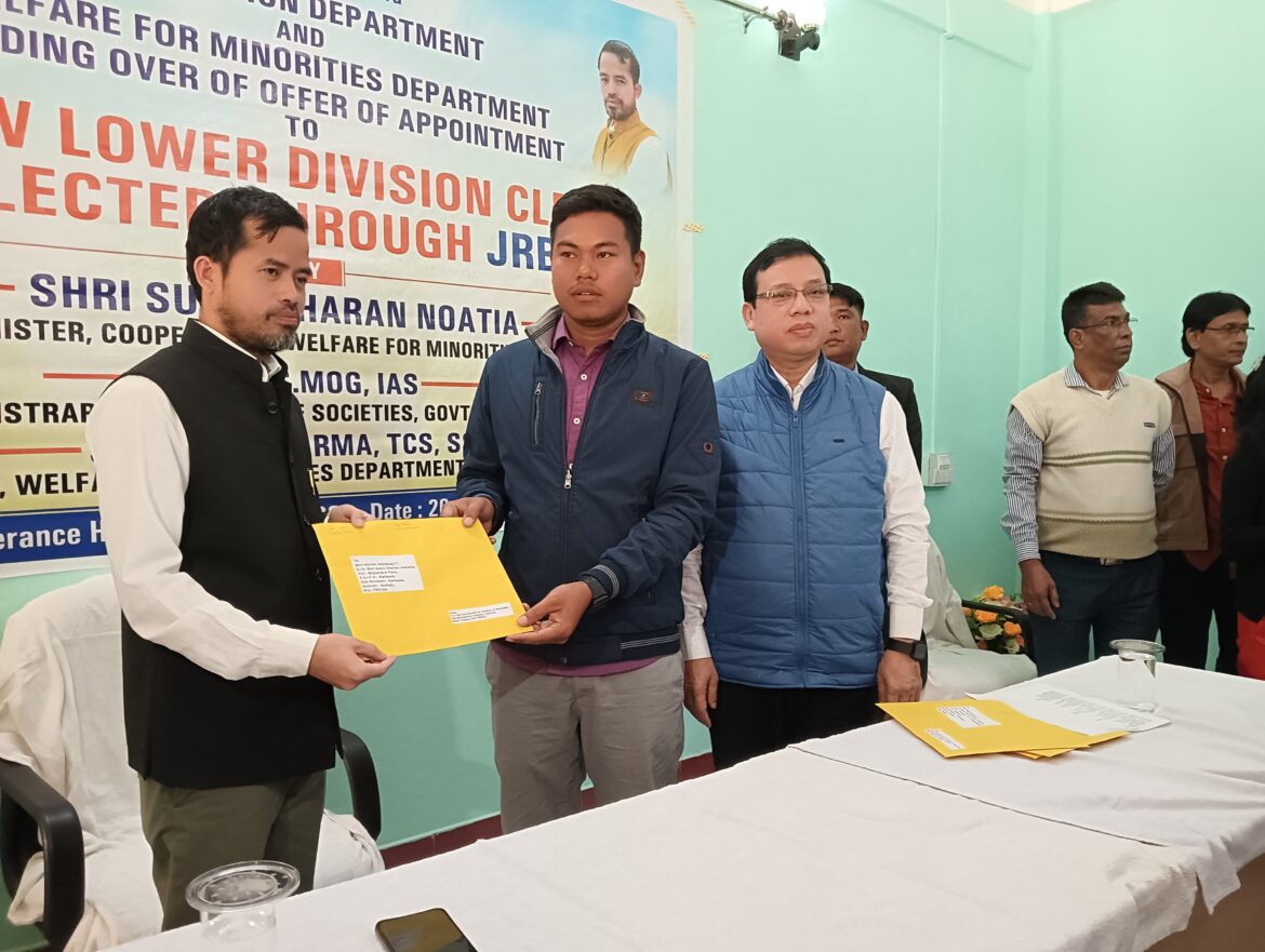 আগরতলা : জে আর বি টির মাধ্যমে গ্রুপ- সি পদে বিভিন্ন দপ্তরে লোক নিয়োগ করা হচ্ছে। মেধা তালিকার ভিত্তিতে বিভিন্ন দপ্তরে যাদের নিয়োগ করা হচ্ছে তাদের হাতে পর্যায় ক্রমে অফার তুলে দেওয়া হচ্ছে। বুধবার একই দিনে একসঙ্গে দুই দপ্তরের অফার দেওয়া হয়। এদিন সমবায় দপ্তরে করণিক পদে ৫২ ভাগ্যবানের হাতে অফার দেওয়া হয়। সংশ্লিষ্ট দপ্তরের রেজিস্ট্রার অফিসে মন্ত্রী শুক্লা চরণ নোয়াতিয়া অফার তুলে দেন। এছাড়াও এদিন অফার দেওয়া হয় সংখ্যালঘু কল্যাণ দপ্তরে ৫ জনকে। যারা অফার পেয়েছেন তাদের মধ্যে একজন রয়েছেন দিব্যাঙ্গজন। তিনি অফার পেয়ে খুব খুশি। অনুষ্ঠানে মন্ত্রী ছাড়াও দুই দপ্তরের আধিকারিকরা উপস্থিত ছিলেন।