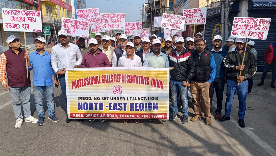 সম্মেলনের দ্বিতীয় দিনে আগরতলায় পদযাত্রা প্রফেশনাল সেলস রিপ্রেজেন্টেটিভ ইউনিয়নের