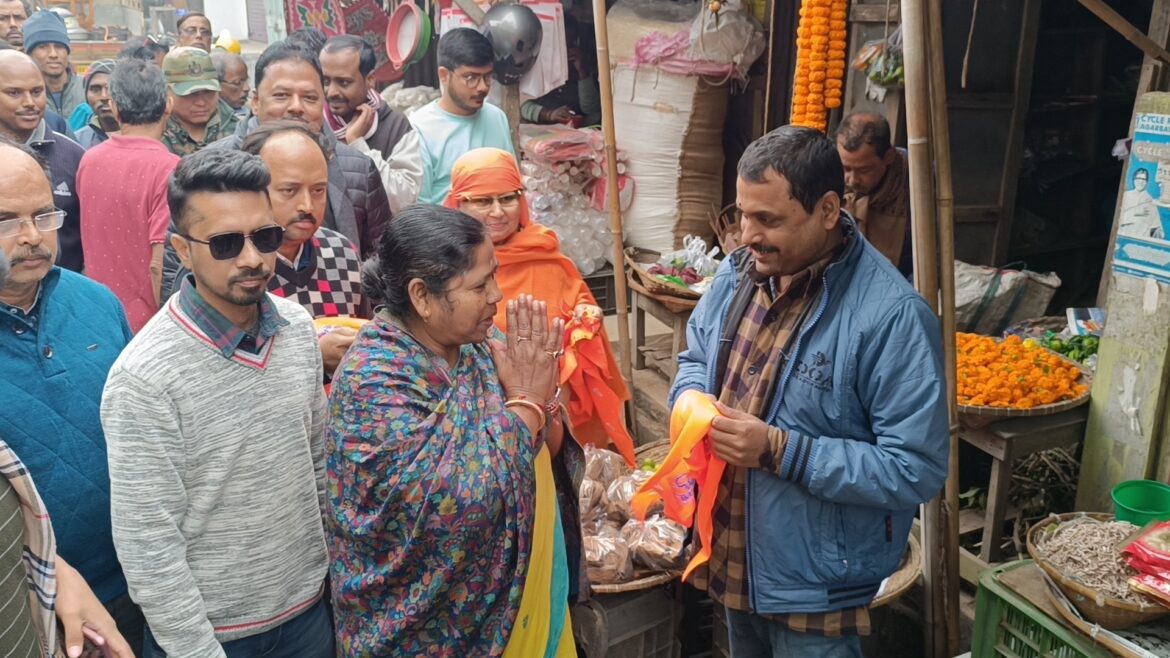 আগরতলা : বাজার ব্যবসায়ী সহ লোকজনের মধ্যে ধ্বজ বিলি করছেন কেন্দ্রীয় প্রতি মন্ত্রী প্রতিমা ভৌমিক। শুক্রবারের পরে শনিবারও তিনি দলীয় কর্মী- সমর্থকদের সঙ্গে নিয়ে ধ্বজ বিলি করেন। শনিবার রাজধানীর দুর্গা চৌমুহনী বাজারে ক্রেতা- বিক্রেতার হাতে ধ্বজ তুলে দেন। যাতে সকলেই বাড়িতে এই ধ্বজ লাগান। কেন্দ্রীয় প্রতিমন্ত্রী জানান প্রধানমন্ত্রীর আহ্বানে সেদিন সকলে যাতে বাড়িতে ৫ টি করে প্রদীপ প্রজ্জলন করেন এবং দীপাবলি উদযাপন করেন। প্রতিমা ভৌমিক আরও বলেন, আমরা ভাগ্যশালী যে এই সময়ে রাম লালার প্রাণ প্রতিষ্ঠা হচ্ছে। গত ৫০০ বছর ধরে অনেকে চেষ্টা করেছেন , তাদের পরিশ্রম, বলিদানের ফসল ভোগ করছেন সকলে। রামের গৃহ প্রবেশ এটা আবেগ, স্বাভিমানের বিষয়।