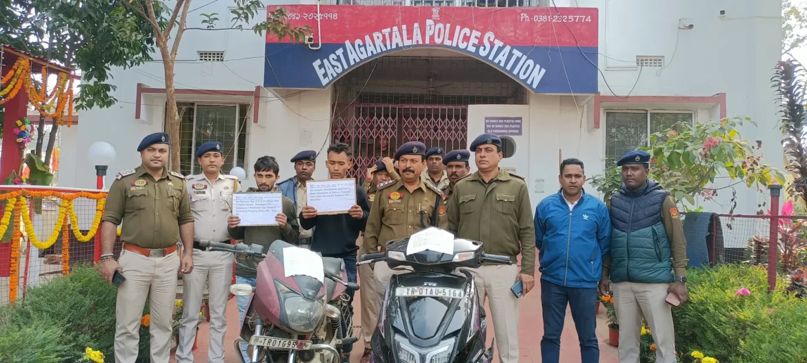 আগরতলা : রাজধানীর পূর্ব থানা এলাকা থেকে চুরি যাওয়া মোটর বাইক উদ্ধার করতে সক্ষম হল পূর্ব আগরতলা থানার পুলিস। মঙ্গলবার রাতে পুলিস দুইজনকে জালে তুলতে সক্ষম হয় লেক চৌমুহনী ও মর্ডান ক্লাব এলাকা থেকে। উদ্ধার হয় প্রায় এক সপ্তাহ আগে চুরি হওয়া বাইক ও স্কুটি। বুধবার ধৃত দুইজনকে আদালতে সোপর্দ করা হয়। থানার ও সি জানান, ধৃতরা জিজ্ঞাসাবাদে আরও কয়েকজনের নাম উঠে এসেছে। শীঘ্রই তাদের জালে তোলা হবে। অভিযোগ আগরতলা শহরে ক্রমাগত চুরির ঘটনা বেড়ে চলেছে। স্বাভাবিক ভাবেই উদ্বিগ্ন সচেতন মহল।