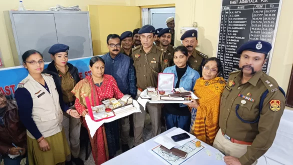 আগরতলা : ফিরে পেলেন নিজেদের স্বর্ণালঙ্কার। পুলিসের তৎপরতায় চুরি যাওয়া গয়না ফিরে পেয়ে খুশি স্বর্ণালঙ্কারের মালিকরা। মঙ্গলবার পূর্ব আগরতলা থানায় তাদের হাতে ৩০ লাখ টাকা মূল্যের স্বর্ণালঙ্কার গুলি তুলে দেন জেলা- মহকুমা পুলিস আধিকারিকরা। উপস্থিত ছিলেন পশ্চিম জেলার পুলিস সুপার, সদর মহকুমা পুলিস আধিকারিক, পূর্ব আগরতলা থানার ওসি সহ অন্যান্য আধিকারিকরা। পুলিস সুপার কিরণ কুমার কে জানান, আদালতের নির্দেশের পরে ২০২৩ সালে নভেম্বর- ডিসেম্বরের বিভিন্ন সময়ে এই চুরির ঘটনা গুলি সংঘটিত হয়েছে। পুলিস তদন্তে নেমে ১৭ জনকে গ্রেপ্তার করে তাদের জিজ্ঞাসাবাদ চালিয়ে স্বর্ণালঙ্কার গুলি উদ্ধার করেছেন। বর্তমানে অভিযুক্তরা জেল হাজতে রয়েছে।