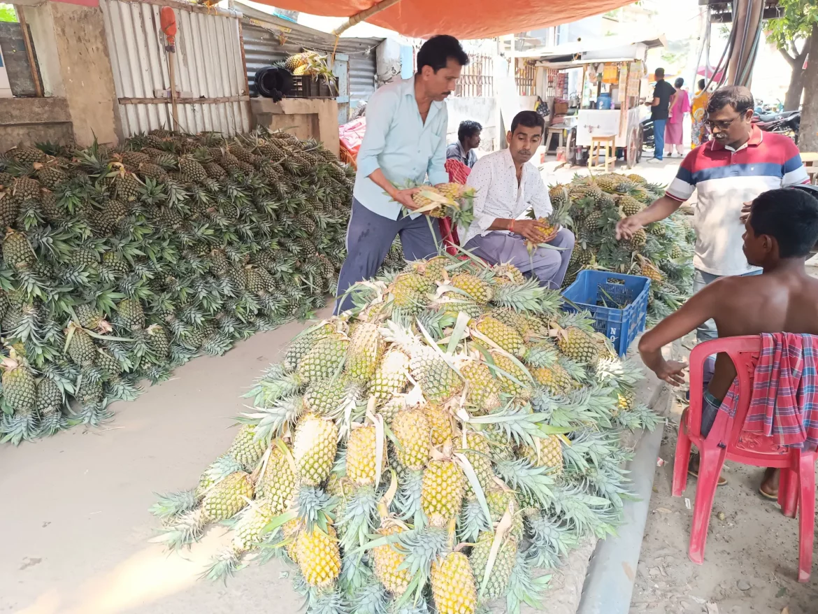 আগরতলা : চাহিদা থাকলেও দাম বেশি। তাই বিক্রি এখনই তেমনটা নেই। গ্রীষ্মের রসালো ফলগুলির মধ্যে রাজ্যের উৎপাদিত আনারস অন্যতম। সুস্বাদু এই আনারস রাজ্যের বিভিন্ন জায়গায় চাষ হয়। গ্রীষ্মের এই রসালো ফলের চাহিদা এই সময়ে থাকে তুঙ্গে।এবছর বাজারে চলে এসেছে আনারস। মঙ্গলবার রাজধানীর প্যারাডাইস চৌমুহনীতে দেখা গেল বিক্রেতারা আনারস নিয়ে বসেছেন। প্রতিবছর এখানে বিভিন্ন জায়গার আনারস নিয়ে বসেন বিক্রেতারা।এই মরশুমে সবেমাত্র রসালো আনারস বাজারে এসেছে। তাই দাম বেশি বলে জানান এক বিক্রেতা। তিনি জানান, চাহিদা থাকলেও দামের জন্য তেমন বিক্রি নেই। তবে কিছুদিন পরে দাম কমে গেলে বিক্রিও ভালো হবে। বিক্রেতা আরও জানান গণ্ডাছড়া, কাকরাবন, বিশ্রামগঞ্জ এলাকা থেকে এসেছে এই রসালো আনারস। এখন ১০০, ৮০, ৬০ টাকা জোড়া বিক্রি হচ্ছে আনারস।