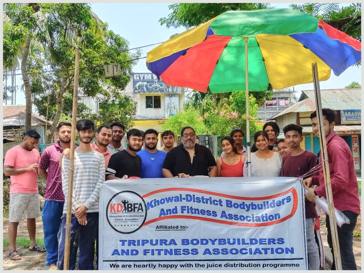 লোকজনের মধ্যে আমপানা ও লেবুর শরবত বিলি খোয়াই বডি বিল্ডার্স এন্ড ফিটনেস এসোসিয়েশনের