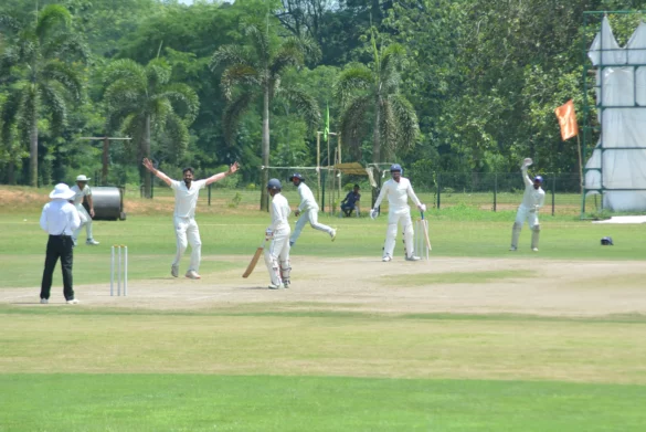 আগরতলা : ত্রিপুরা ক্রিকেট এসোসিয়েশন পরিচালিত সন্তোষ মেমোরিয়াল প্রথম ডিভিশন ঘরোয়া ক্লাব লিগের দুইদিবসিয় সুপার চারের দুটি ম্যাচ হচ্ছে দুই মাঠে। শনিবার থেকে শুরু হয়েছে দুটি ম্যাচ নরসিংগড়স্থিত টিআইটি মাঠে ও পুলিশ ট্রেনিং একাডেমি মাঠে। পুলিশ ট্রেনিং একাডেমি মাঠে মুখোমুখি হয় কসমোপলিটন ও পোলস্টার।ম্যাচে প্রথমে ব্যাট করতে নেমে কসমোপলিটন প্রথম ইনিংসে ৫৭ ওভার ১ বলে দলের সবকটি উইকেট হারিয়ে ২০৩ রান সংগ্রহ করে। কসমোপলিটান ক্লাবের হয়ে শতরান করেন বাবুল দে। বাবুল দে ১৪৭ বলে ১২ টি চারের সুবাদে ১০২ রান করেন। পোলস্টার ক্লাবের হয়ে পোরুশ মিশ্র ৪ টি উইকেট তুলে নেয়৷ কসমোপলিটান এর দেওয়া ২০৩ রান তাড়া করতে নেমে প্রথম দিন শেষে ৪ উইকেটে ৭৭ রান সংগ্রহ করে পোলস্টার ক্লাব। দিনের অপর ম্যাচে টি আই টি মাঠে মুখোমুখি হয় হার্ভে ও চলমান সংঘ। ম্যাচে প্রথম ইনিংসে দিন শেষে চলমান সংঘ ২০৬ রানে এগিয়ে থেকে প্রথম দিনের খেলা শেষ করে। প্রথমে ব্যাট করতে নেমে চলমান সংঘ দলের সবকটি উইকেট হারিয়ে ২৪৭ রান সংগ্রহ করে।জবাবে ব্যাট করতে নেমে ৫ উইকেট হারিয়ে স্কোর বোর্ডে ৪১ রান সংগ্রহ করে দিনের খেলা শেষ করে হার্ভে।