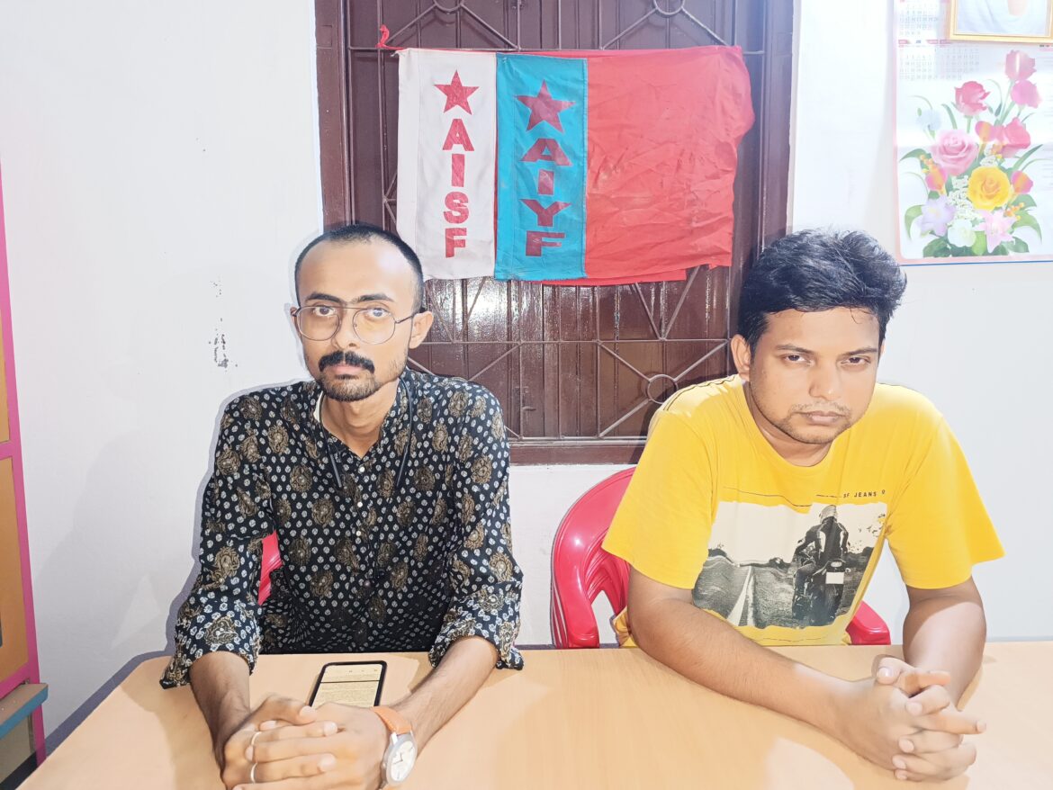 ত্রিপুরা আগরতলা : এডিসিতে নিয়োগের পরীক্ষার আন্সার কি ফাঁস ও নীট ইউজি পরীক্ষার ফলাফলে কেলেঙ্কারির অভিযোগ এনে সরব সারা ভারত ছাত্র ফেডারেশন ও সারা ভারত যুব ফেডারেশন ত্রিপুরা রাজ্য পরিষদ। রবিবার দুই সংগঠনের তরফে আগরতলায় সাংবাদিক সম্মেলন করা হয়। উপস্থিত ছিলেন ছাত্র নেতা শুভদীপ মজুমদার ও যুব নেতা বিক্রমজিৎ সেনগুপ্ত। তারা এদিন এ ডি সিতে ১১০ পদে লোক নিয়োগের পরীক্ষার আন্সার কি ফাঁসের ঘটনার প্রতিবাদ জানান। বলেন, এডিসি নির্বাচনে তিপ্রা মথা জয়ী হবার পর ৩ বছরে প্রথম নিয়োগেই অনিয়ম। পরীক্ষার আগেই ফাঁস আন্সার কি। দুই সংগঠন এই কেলেঙ্কারির পূর্ণাঙ্গ ও সুষ্ঠ তদন্তের দাবি জানায় এবং দোষীদের বিরুদ্ধে ব্যবস্থা নেওয়ার। শুধু তাই নয়, ফের প্রশ্নপত্র তৈরি করে অতিসত্তর নিয়োগ প্রক্রিয়া সম্পন্ন করারও দাবি জানায় এদিন। এদিকে NEET UG- তেও কেলেঙ্কারি হয়েছে বলে অভিযোগ তাদের। এই কেলেঙ্কারীর তদন্তের দাবি করেছে দুই সংগঠন। এদিকে বিজেপি ও তিপ্রা মথার ছাত্র সংগঠনের সমালোচনা করেন তারা এসব ঘটনায় নীরব ভূমিকা নিয়ে।