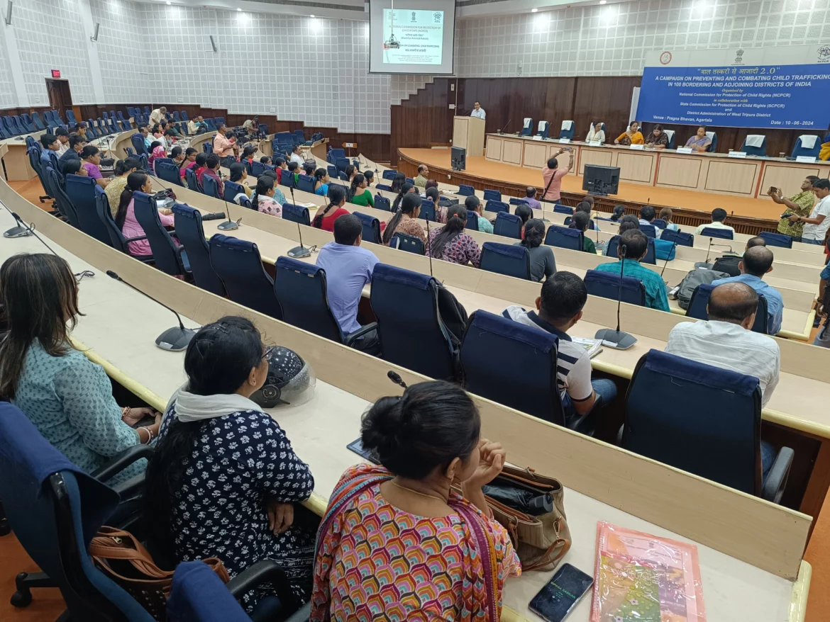 ত্রিপুরা আগরতলা : ভারতের বিভিন্ন রাজ্যের সঙ্গে ত্রিপুরায়ও শিশু পাচারের ঘটনা ঘটছে।আজকের শিশু, আগামীদিনের দেশের ভবিষ্যৎ।একথা বললেন শিশু অধিকার সুরক্ষা কমিশনের কমিশনার। শিশুদের সুরক্ষার জন্য সোমবার ফের কর্মশালার আয়োজন করা হয়। এদিন রাজধানীর প্রজ্ঞাভবনে হয় একদিনের কর্মশালা।শিশু পাচার প্রতিরোধ ও প্রতিরোধ- বাল তস্করী সে আজাদী 2.0 নামে একটি সংবেদনশীল কর্মশালা হয় এদিন। জাতীয় শিশু অধিকার সুরক্ষা কমিশন ও ত্রিপুরা শিশু সুরক্ষা কমিশনের যৌথ উদ্যোগে এই কর্মশালা হয়। এতে রাজ্যের বিভিন্ন স্তরের পুলিস আধিকারিক ও সংশ্লিষ্ট প্রশাসনের বিভিন্ন আধিকারিক-কর্মীরা অংশ নেন। উপস্থিত ছিলেন ন্যাশনাল কমিশন পর প্রোডাকশন অফ চাইল্ডস এর রিসোর্সপার্সন এবং কনসালটেন্ট সোনাক্ষী রাধিকা, ত্রিপুরা শিশু সুরক্ষা অধিকার কমিশনের কমিশনার জয়ন্তী দেববর্মা সহ অন্যরা। সেখানে শিশুদের সুরক্ষায় বিভিন্ন বিষয়ে আলোচনা হয়।