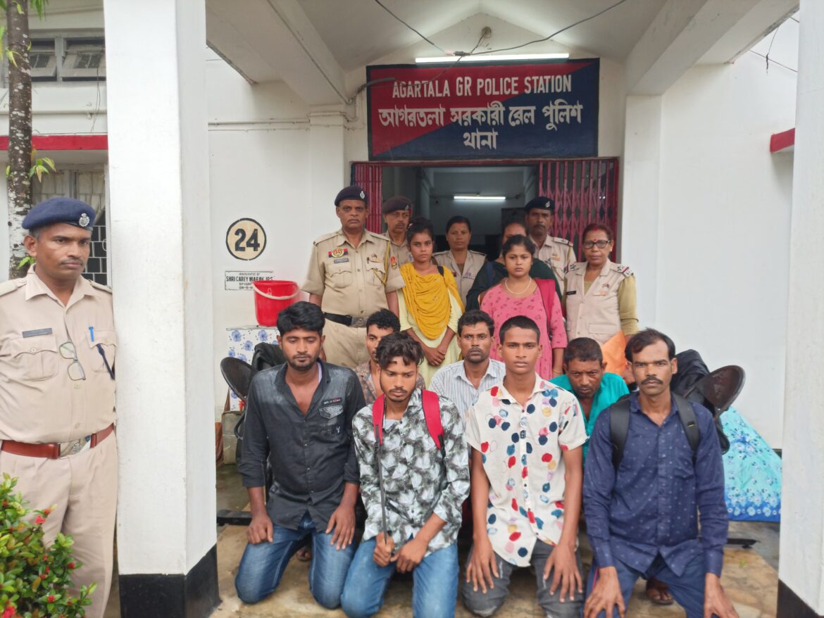 ত্রিপুরা আগরতলা : সীমান্তে বিএসএফের নজরদারি নিয়ে ফের উঠছে প্রশ্ন। অভিযোগ অবৈধভাবে বাংলাদেশী নাগরিকদের অনুপ্রবেশ অব্যাহত রয়েছে।তারা ভারতের বিভিন্ন রাজ্যে যাওয়ার সময় আগরতলা রেল স্টেশনে এসে ধরা পড়ছে। অভিযোগ প্রায়শই বাংলাদেশী নাগরিক অবৈধভাবে এসে জি আর পির হাতে ধরা পড়ছে। বৃহস্পতিবার ফের এমন ঘটনা ঘটে। গোপন খবরের ভিত্তিতে আগরতলা সরকারি রেল থানার পুলিসের হাতে ধরা পড়ে ৮ বাংলাদেশী নাগরিক। তারাও অবৈধ ভাবে ভারতে আসে দালালের মাধ্যমে। জিআরপি দুইজন ভারতীয় দালালকে আটক করেছে। এদের মধ্যে একজন মহিলা। বাংলাদেশী নাগরিকদের মধ্যে ৬ জন পুরুষ ও দুইজন মহিলা। জি আর পি থানায় ধৃতদের বিরুদ্ধে মামলা নিয়ে শুক্রবার আদালতে সোপর্দ করে। জি আর পির তরফে পুলিস রিমান্ডের আবেদন করা হয়।একথা জানান জি আর পি থানার ওসি তাপস দাস। তিনি জানান ধৃতরা চেন্নাই ও কলকাতা যাওয়ার জন্য আগরতলা রেল স্টেশনে আসে।