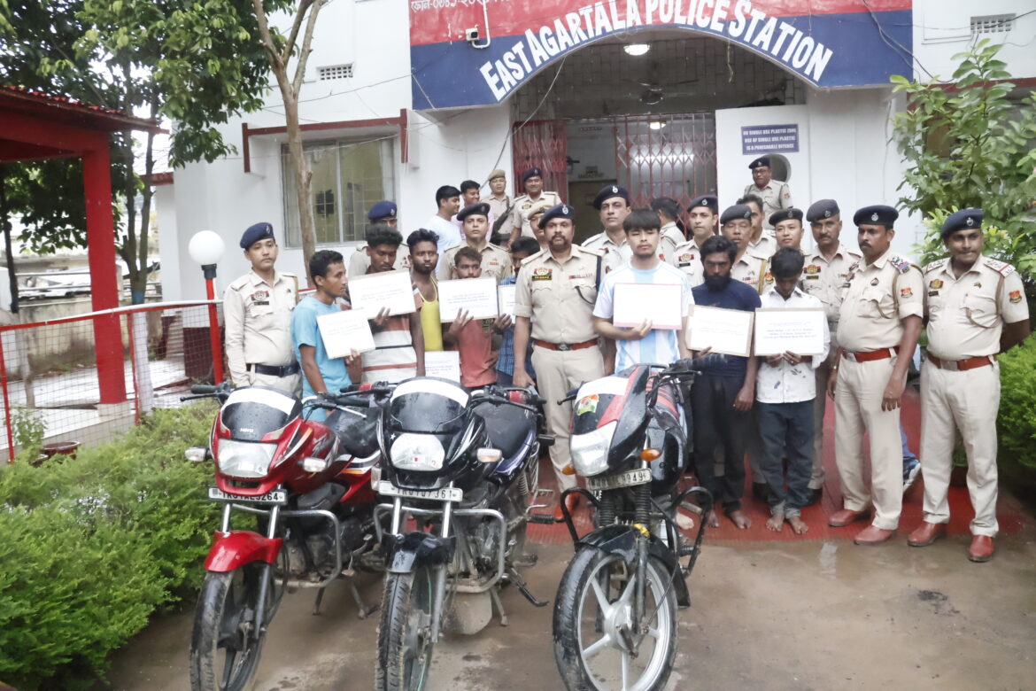 ত্রিপুরা আগরতলা : নেশাকারবারের সঙ্গে চুরির ঘটনাও সংঘটিত করছে একাংশ যুবক। এমনই ৮ জনকে রবিবার রাতে আটক করতে সক্ষম হয়েছে পূর্ব আগরতলা থানার পুলিস বিভিন্ন জায়গা থেকে। সোমবার তাদের আদালতে সোপর্দ করা হয়। প্রথমে রাজধানীর বলদাখাল এলাকায় অভিযান চালিয়ে তিনজনকে আটক করে পুলিস।তাদের জিজ্ঞাসাবাদ চালিয়ে পুলিস জানতে পারে এদের গ্যাং এ আরও লোক রয়েছে। সেই মোতাবেক আগরতলা টাউন হল এলাকায় অভিযান চালিয়ে ৩ জনকে জালে তুলে পুলিস।শিশু উদ্যান এলাকা থেকে আরও দুই জনকে আটক করা হয়। অভিযোগ ধৃতরা নেশা কারবারের পাশাপাশি চুরির সাথেও যুক্ত। তাদের কাছ থেকে তিনটি বাইক, একটি রিক্সা, ব্রাউন সুগার ভর্তি ২৩৪ টি কৌটা ও কিছু গাঁজা উদ্ধার করতে সক্ষম হয় পূর্ব আগরতলা থানার পুলিস। একথা জানান পশ্চিম জেলার পুলিস সুপার কে কিরণ কুমার।