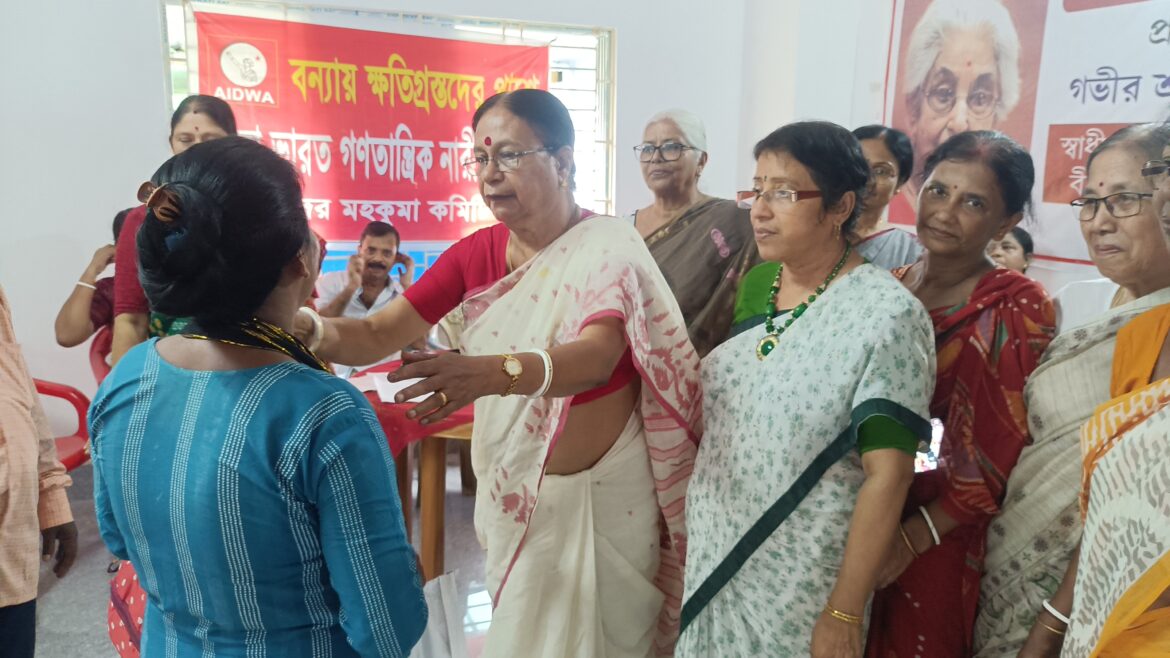 বন্যার্তদের মধ্যে খাদ্য সামগ্রী বিলি বাম নারী সংগঠনের